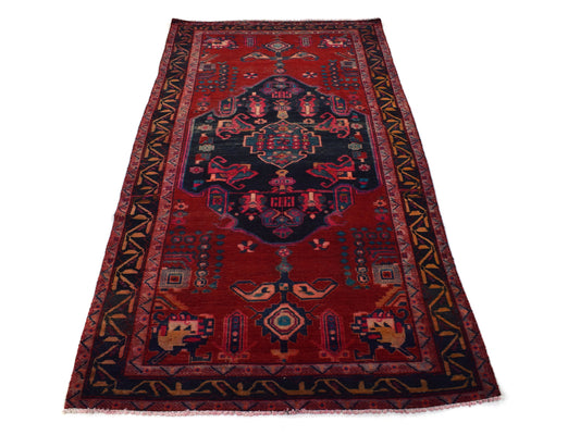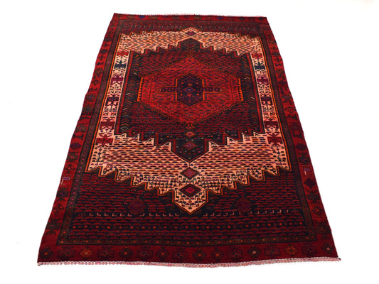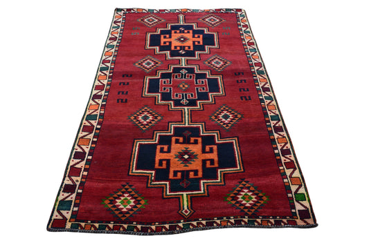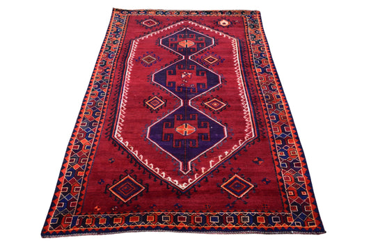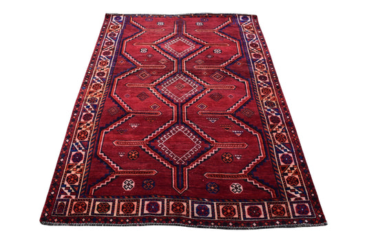 SHR582: This bold 5x7 Turkish rug from 1970 showcases a rare and visually striking layout...