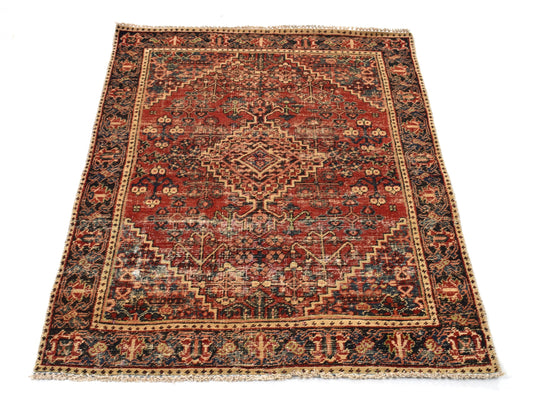 Accurate Dimensions: 125 x 152 cm4.10 x 4.99 ft This 4x5 handmade Turkish vintage rug...
