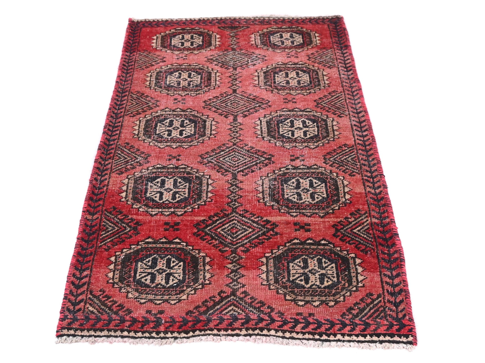 2x4 Handmade Turkish Vintage Tribal Rug | Emblem Star Medallions | Boho Rug, Antique Rug | SHR575 | From 1970