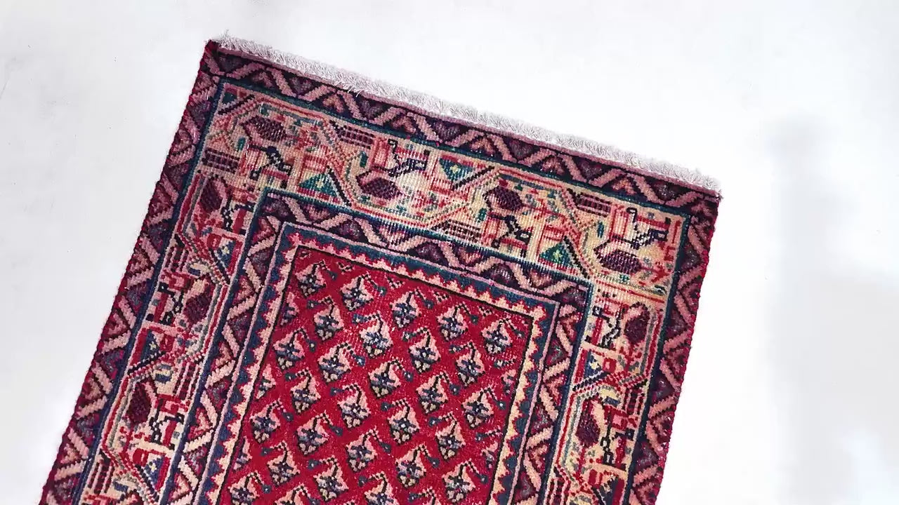 2x5 Handmade Turkish Vintage Tribal Rug | Repeated Geometric Blooms | Boho Rug, Antique Anatolian Rug | SHR-709 | From 1980 | SHR709
