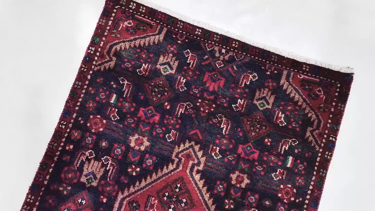 3x10 Handmade Turkish Vintage Tribal Rug | Navy Field With Three Red Medallions | Boho Rug, Anatolian Rug | SHR668 | From 1970