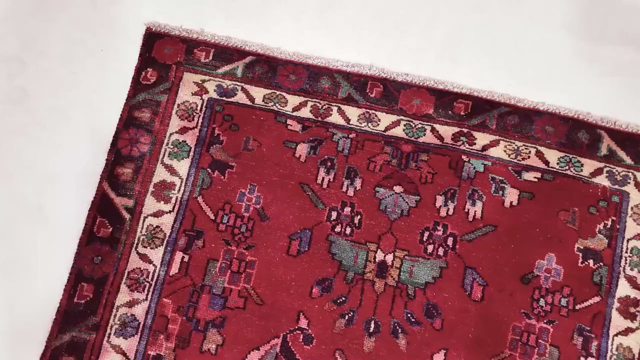 3x10 Handmade Turkish Vintage Tribal Rug | Red Field With Black-Framed Center Medallions | Boho Rug, Anatolian Rug | SHR632 | From 1970
