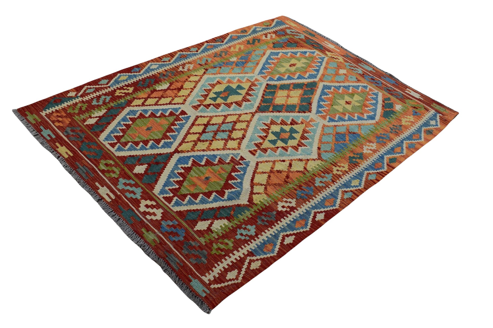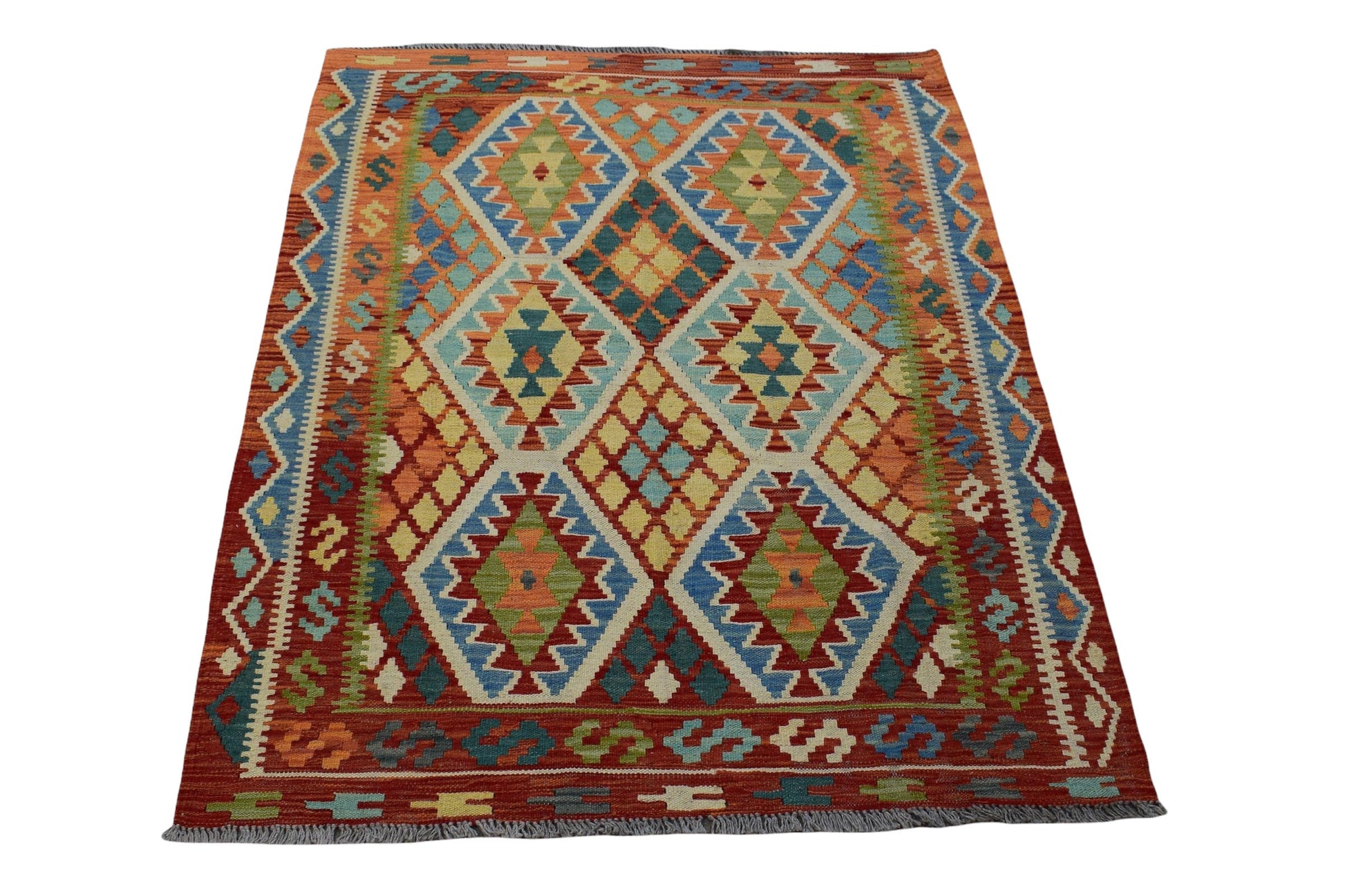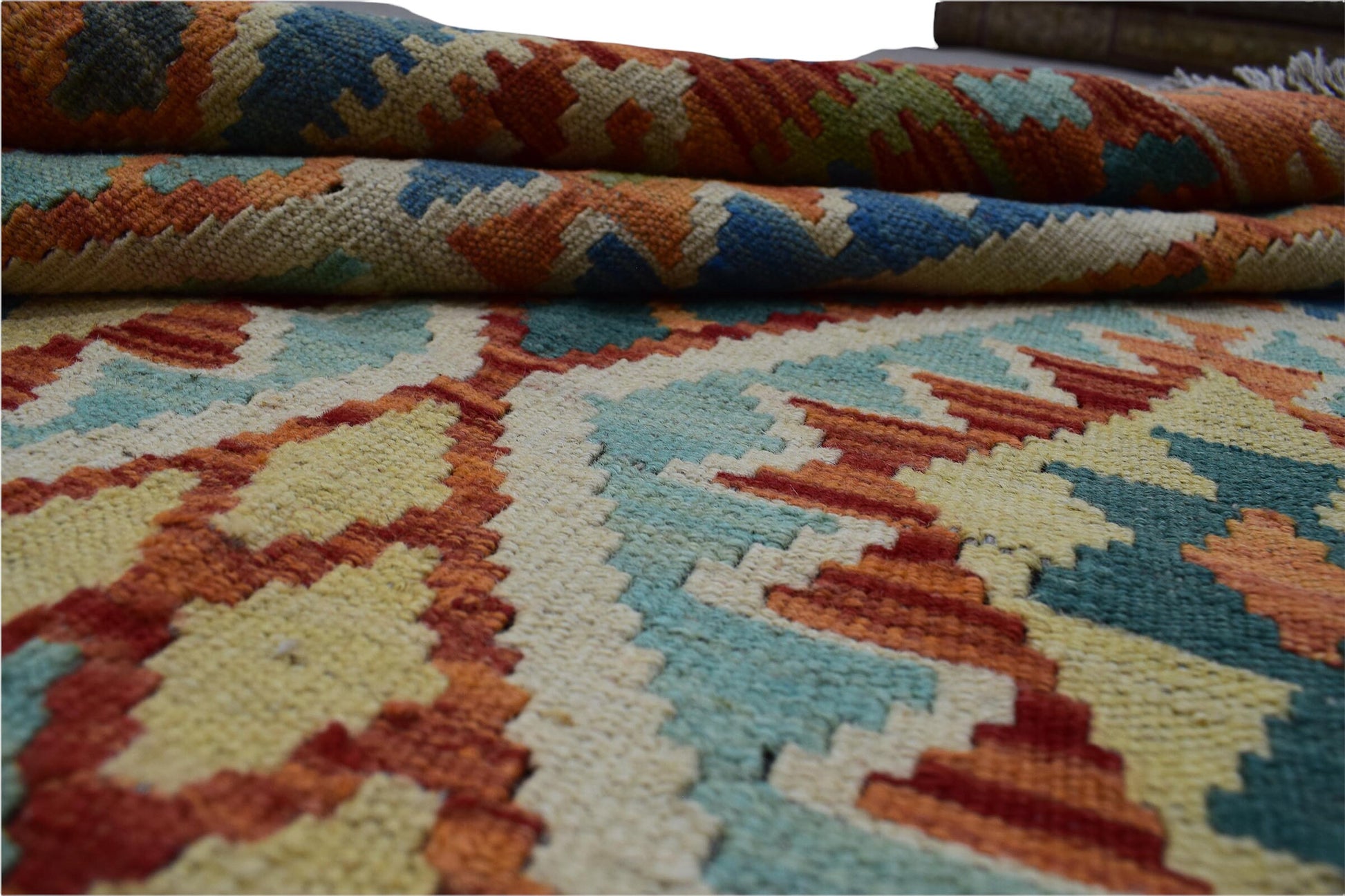 Kilim is a Turkish origin word which is used to describe flat-woven rugs which have no pile. Kilim rugs have been used by civilizations since ancient times. They are made with a flat-weaving technique which involves interweaving various colored wefts and warps. Being handwoven, this rug will maintain its unique and distinct nature and not only increase in value overtime, but also look spectacular even after decades of use. Any age related wear or natural inconsistencies only enhance the feel and beauty of this rug.