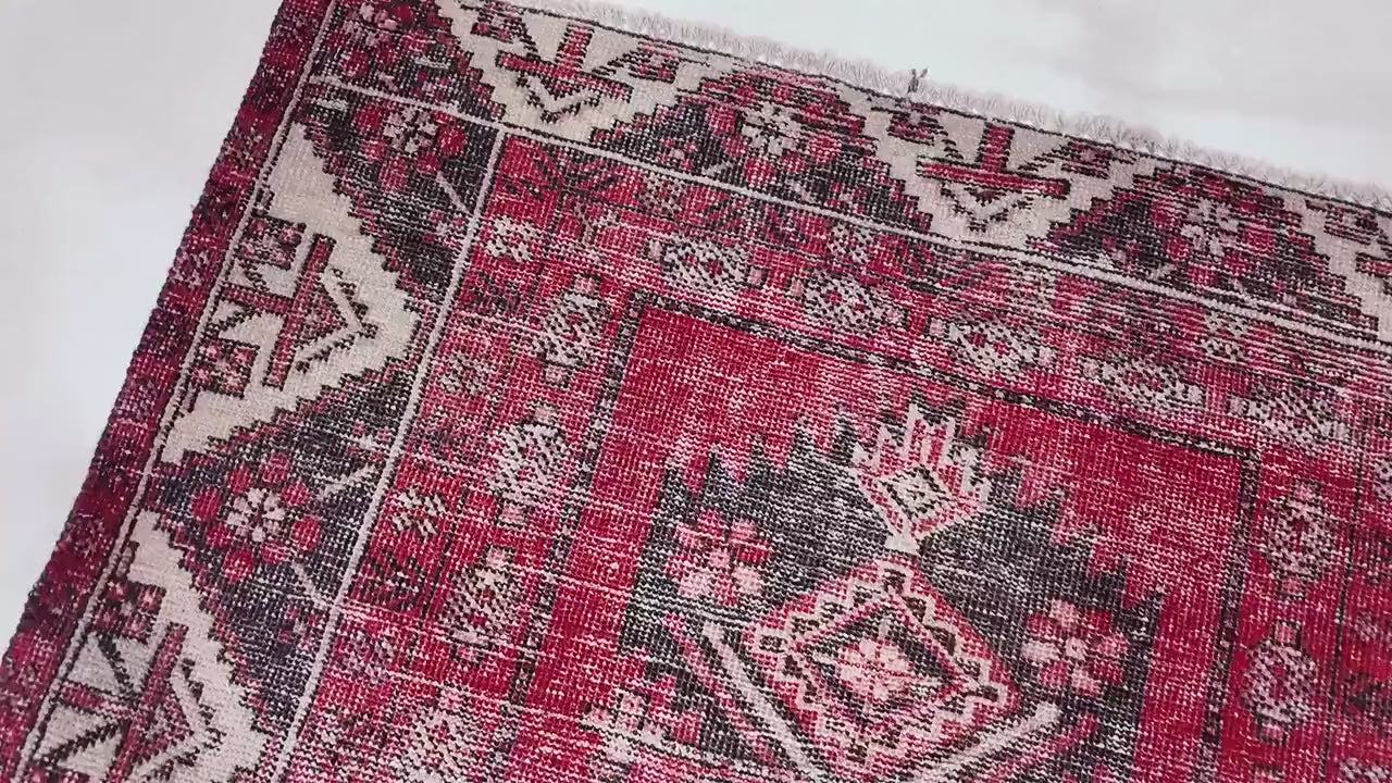 4x7 Handmade Turkish Vintage Tribal Rug | Floral Shield Medallion on Mulberry Field | Boho Rug, Antique Anatolian Rug | SHR491 | From 1970