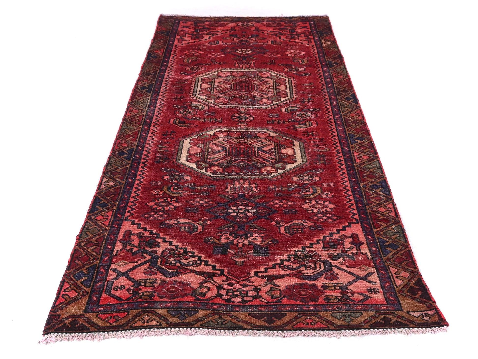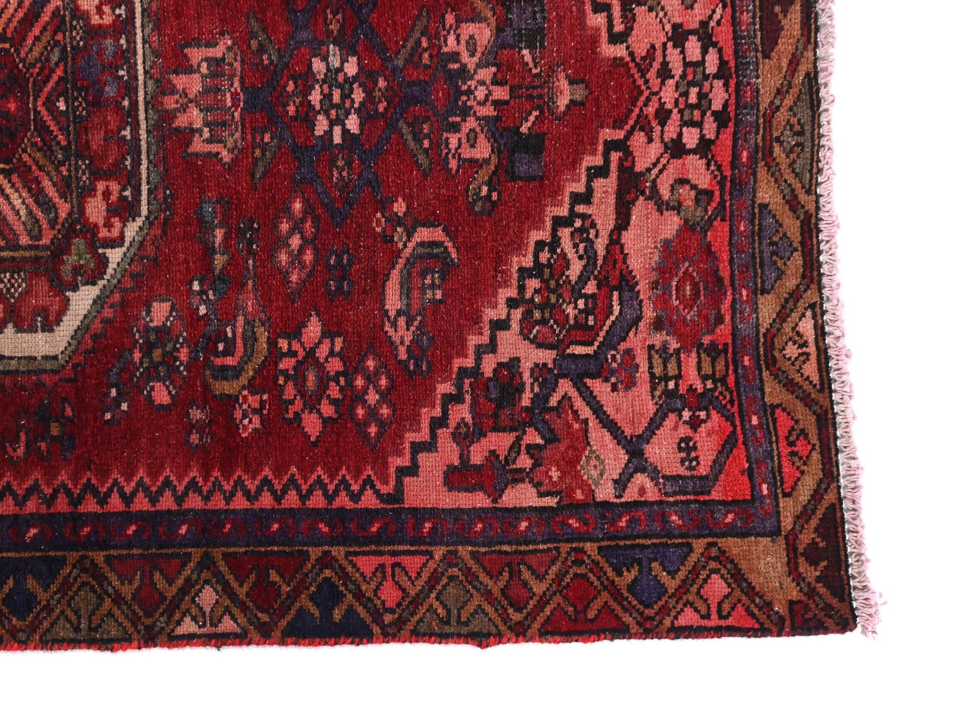3x6 Handmade Turkish Vintage Tribal Rug | Deep Crimson Medallion with Floral Accent | Boho Rug, Antique Anatolian Rug | SHR496 | From 1970