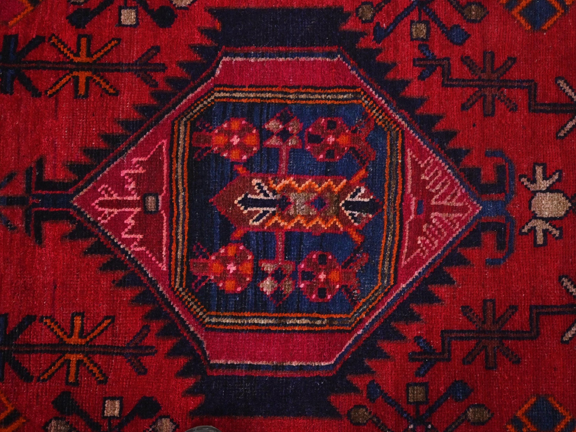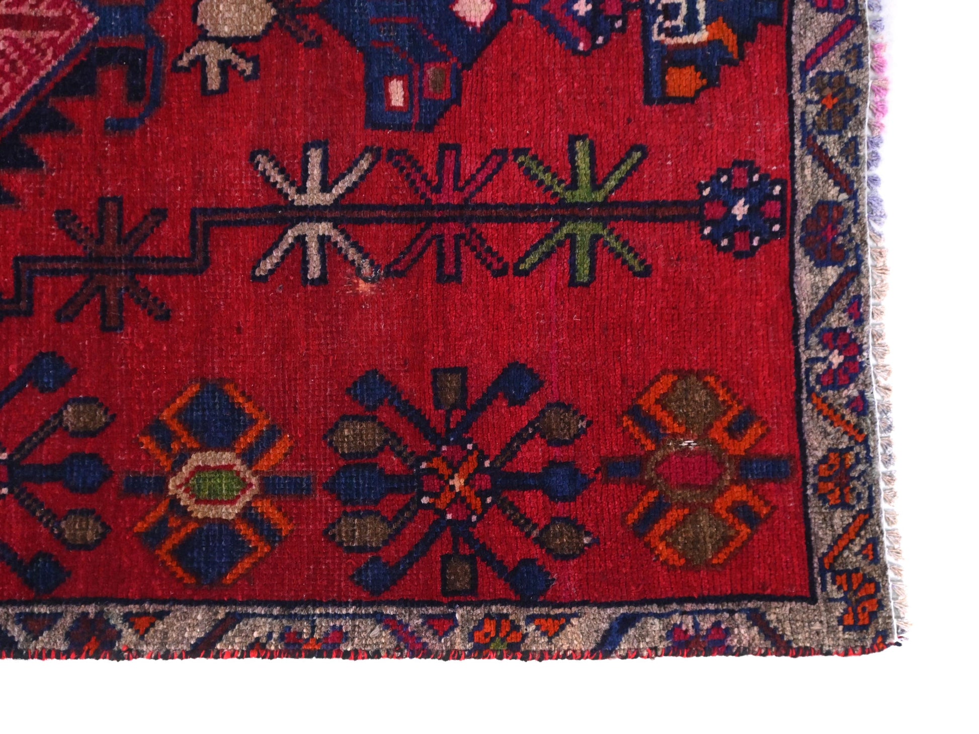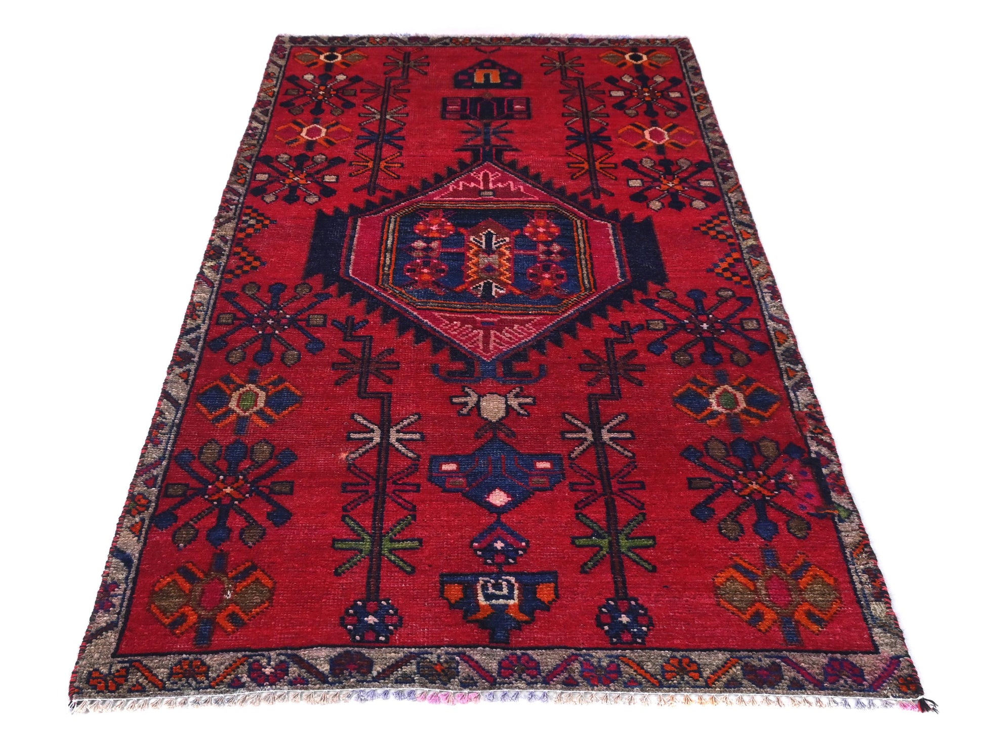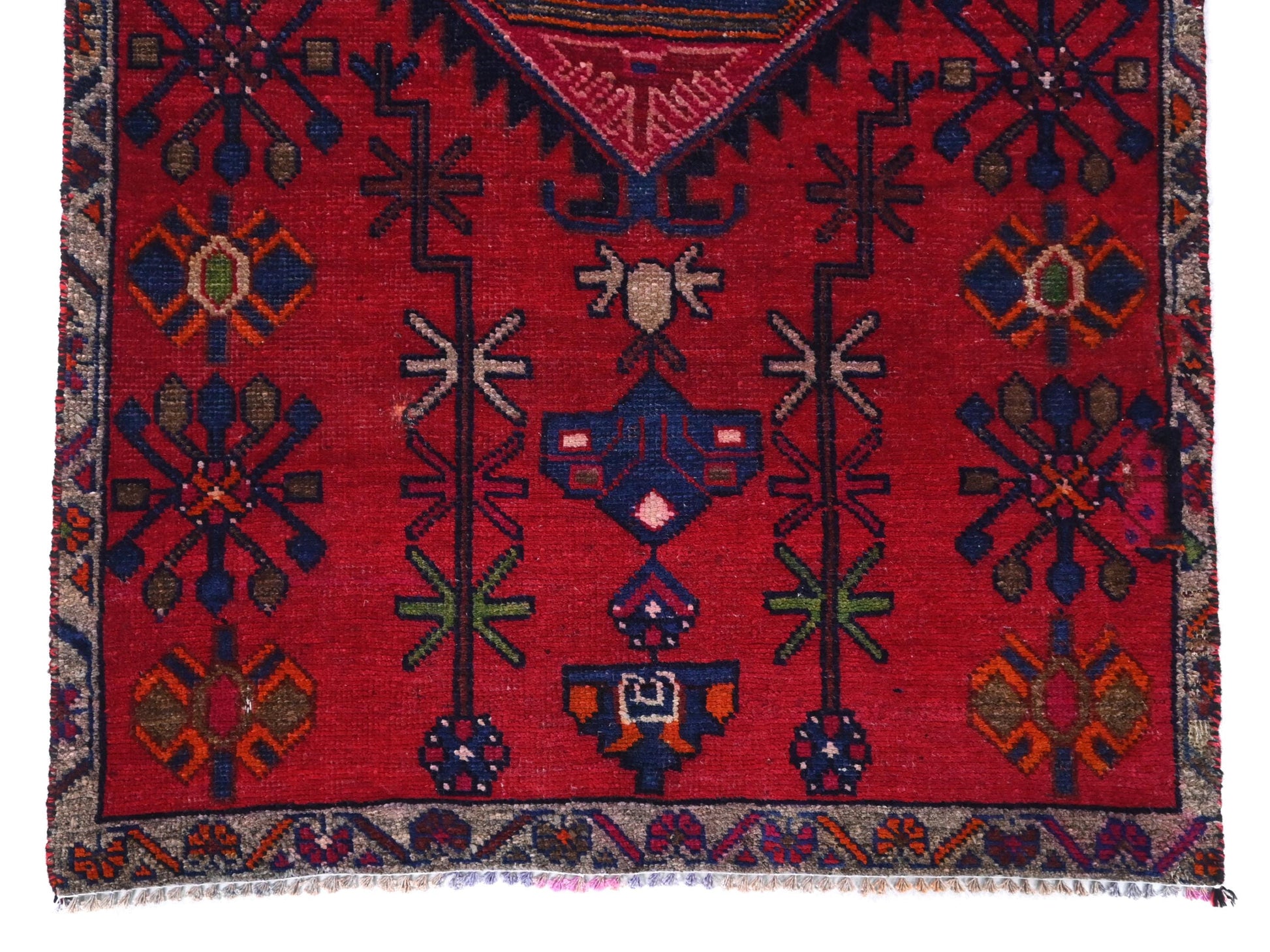 3x6 Handmade Turkish Vintage Tribal Rug | Starburst Symbols on Crimson Embers | Boho Rug, Antique Anatolian Rug | SHR488 | From 1970