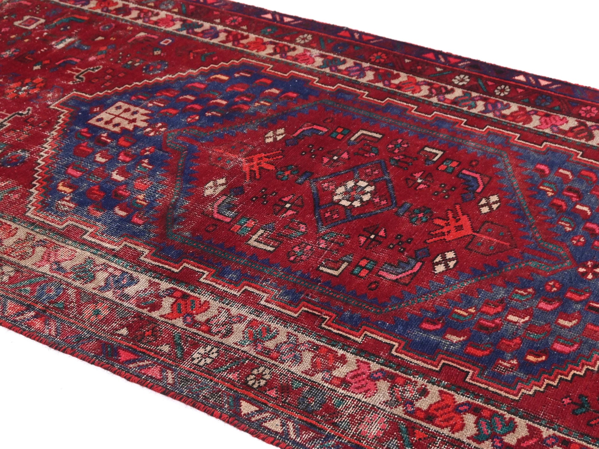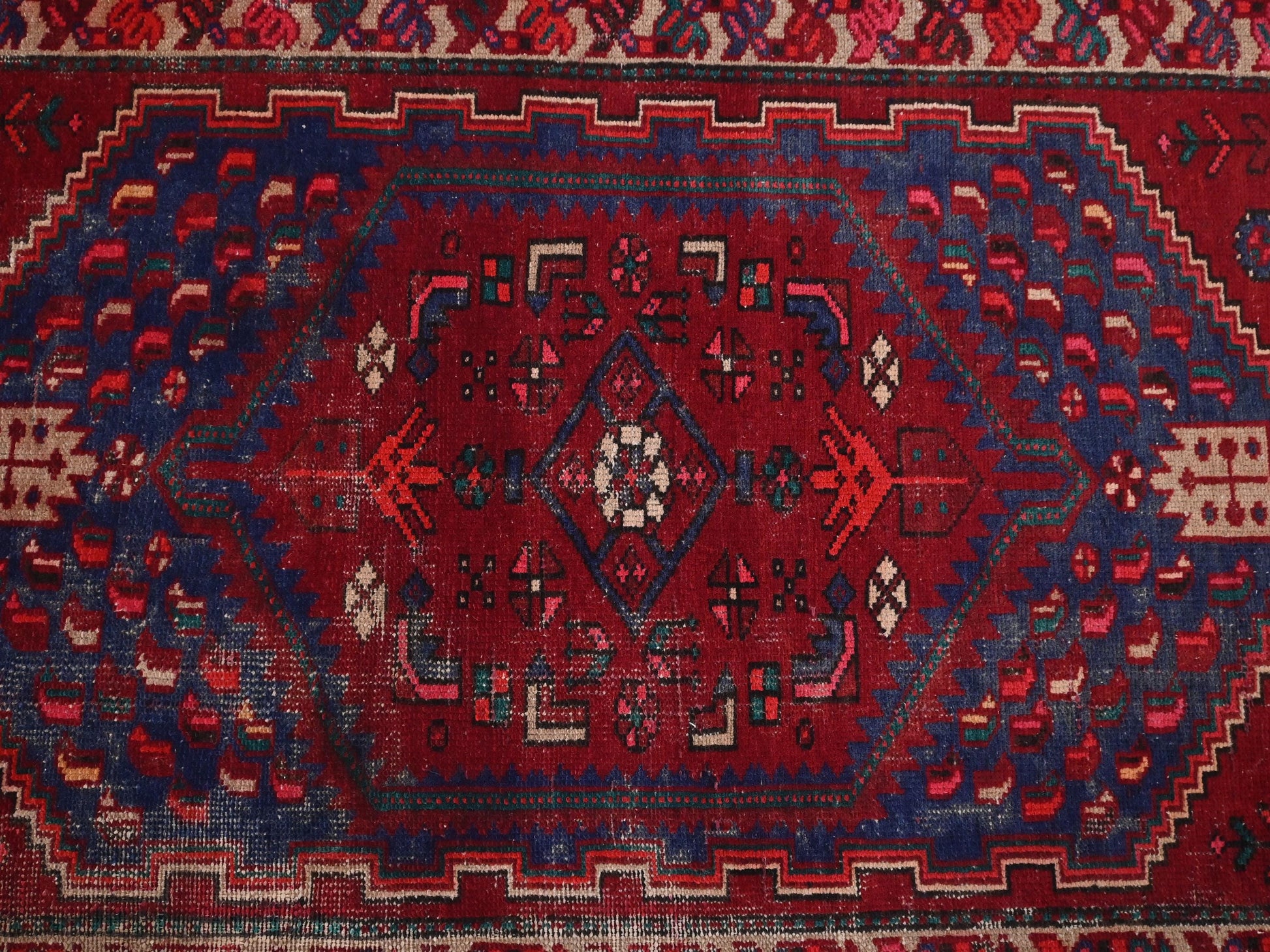 3x7 Handmade Turkish Vintage Tribal Rug | Brick Red Field & Midnight Blue Medallion | Boho Rug, Antique Anatolian Rug | SHR489 | From 1970