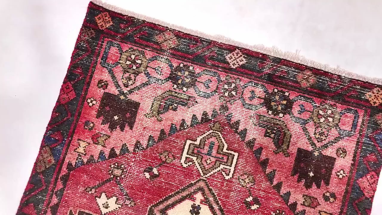 Title: 3x5 Handmade Turkish Vintage Tribal Rug | Elegant Rustic Diamonds on Ruby Back | Boho Rug, Antique Anatolian Rug | SHR513 | From 1970