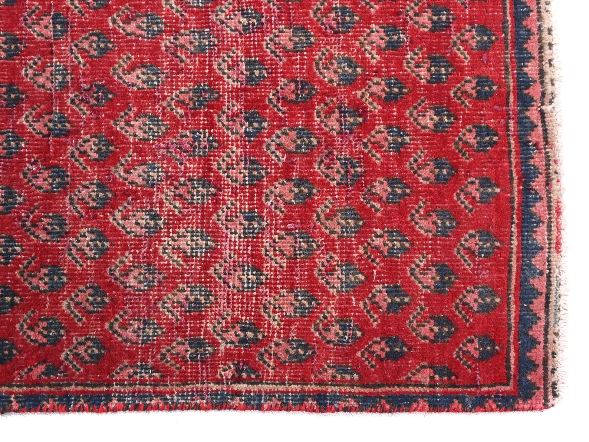 2x10 Handmade Turkish Vintage Tribal Rug | Repeated Gul Motifs on Brick Red Field | Boho Rug, Antique Anatolian Rug | SHR-706 | From 1980 |