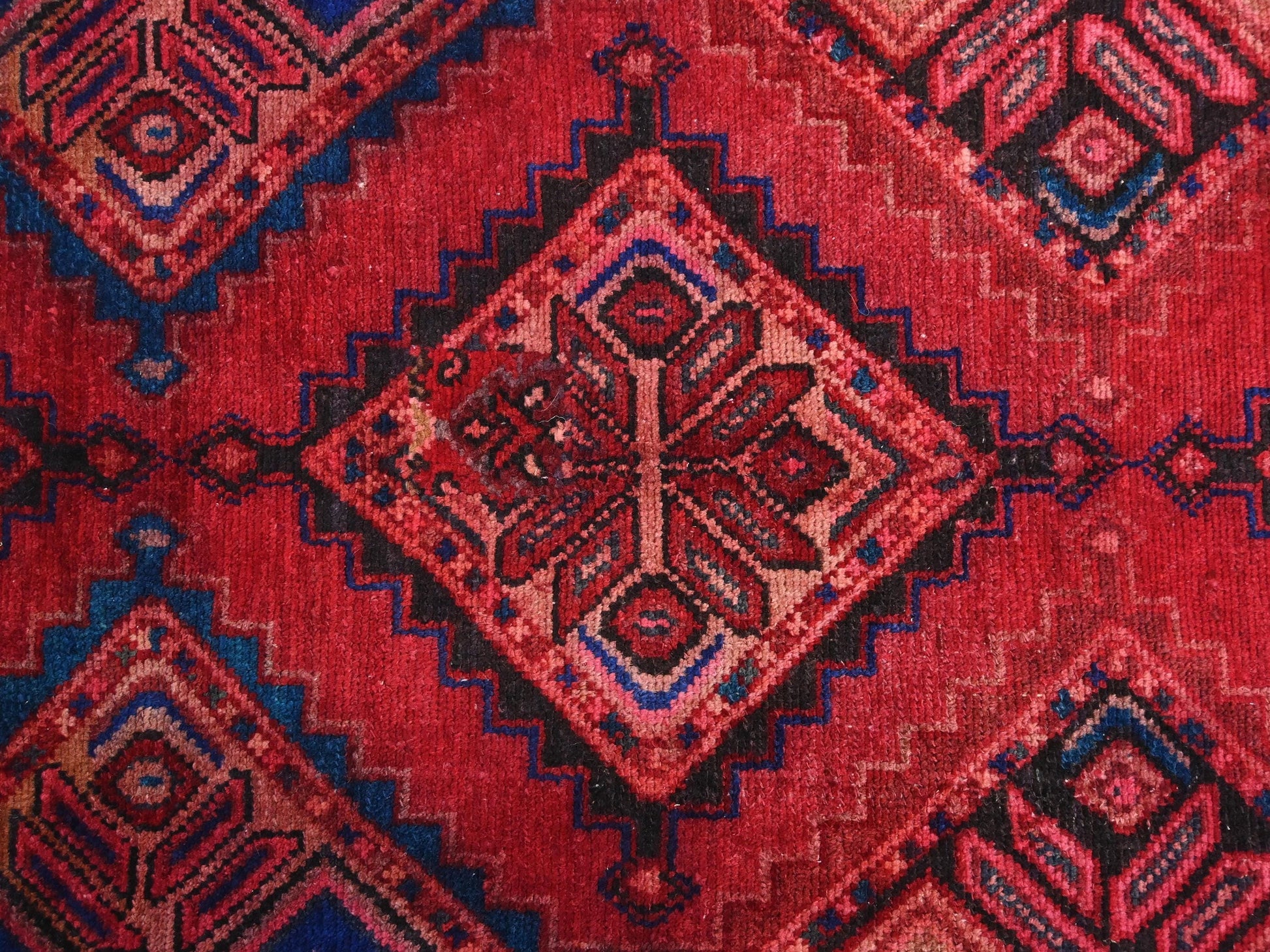 3x11 Handmade Turkish Vintage Tribal Rug | Geometric Diamond Pattern In Striking Red & Navy | Boho Rug, Anatolian Rug | SHR619 | From 1970