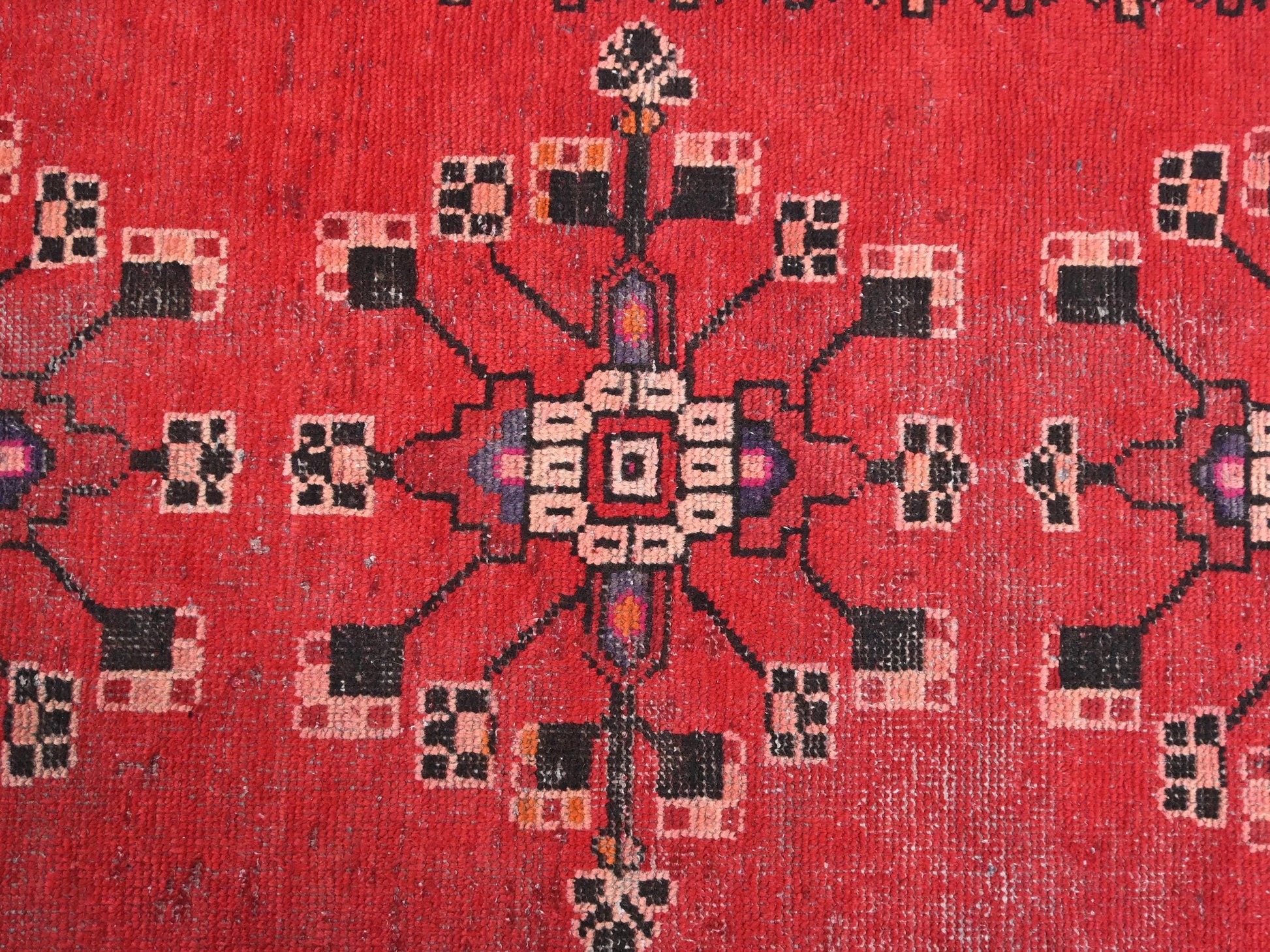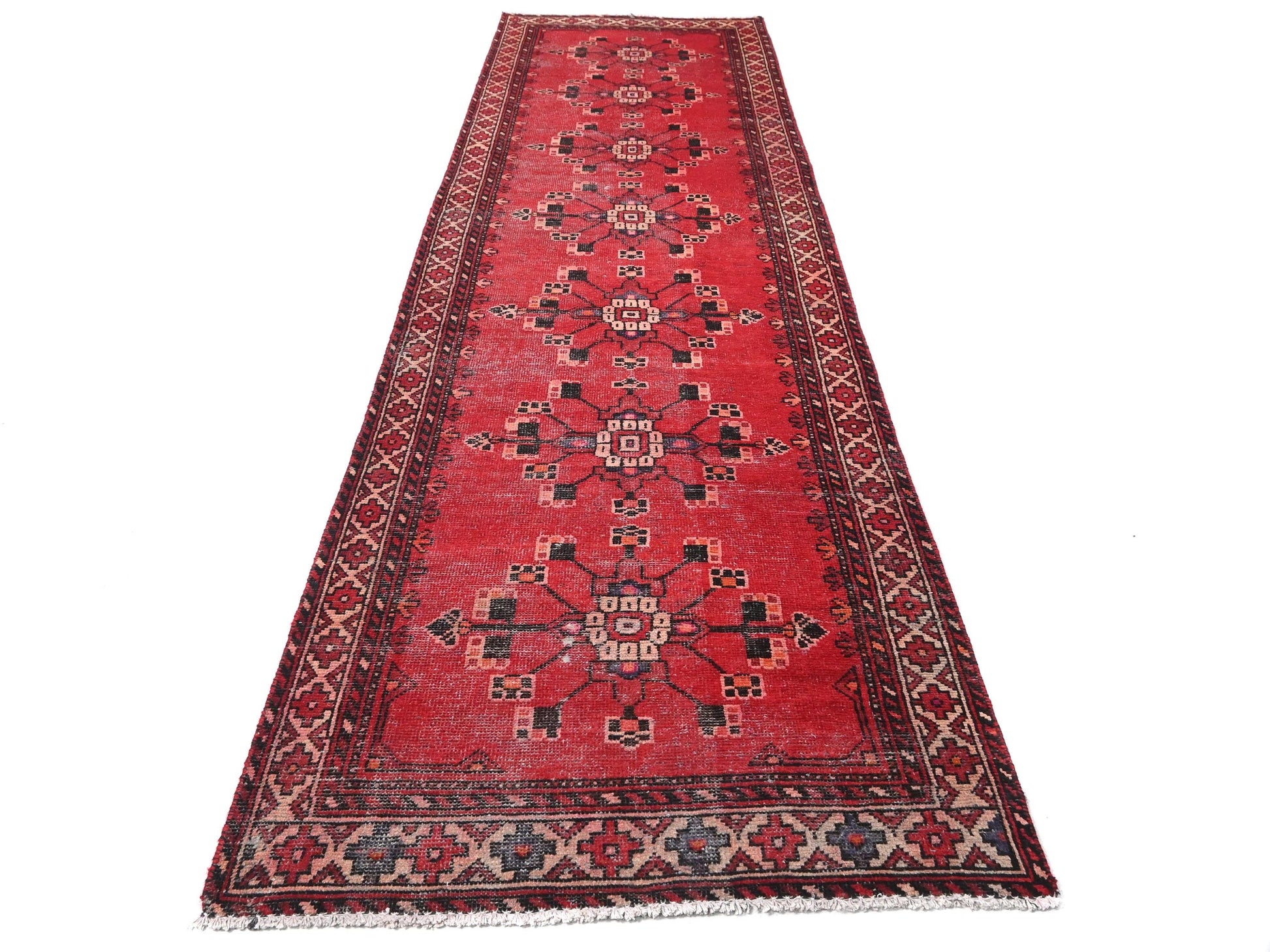 3x11 Handmade Turkish Vintage Tribal Runner | Crimson Row Of Star Guls | Boho Rug, Anatolian Rug | SHR633 | From 1970
