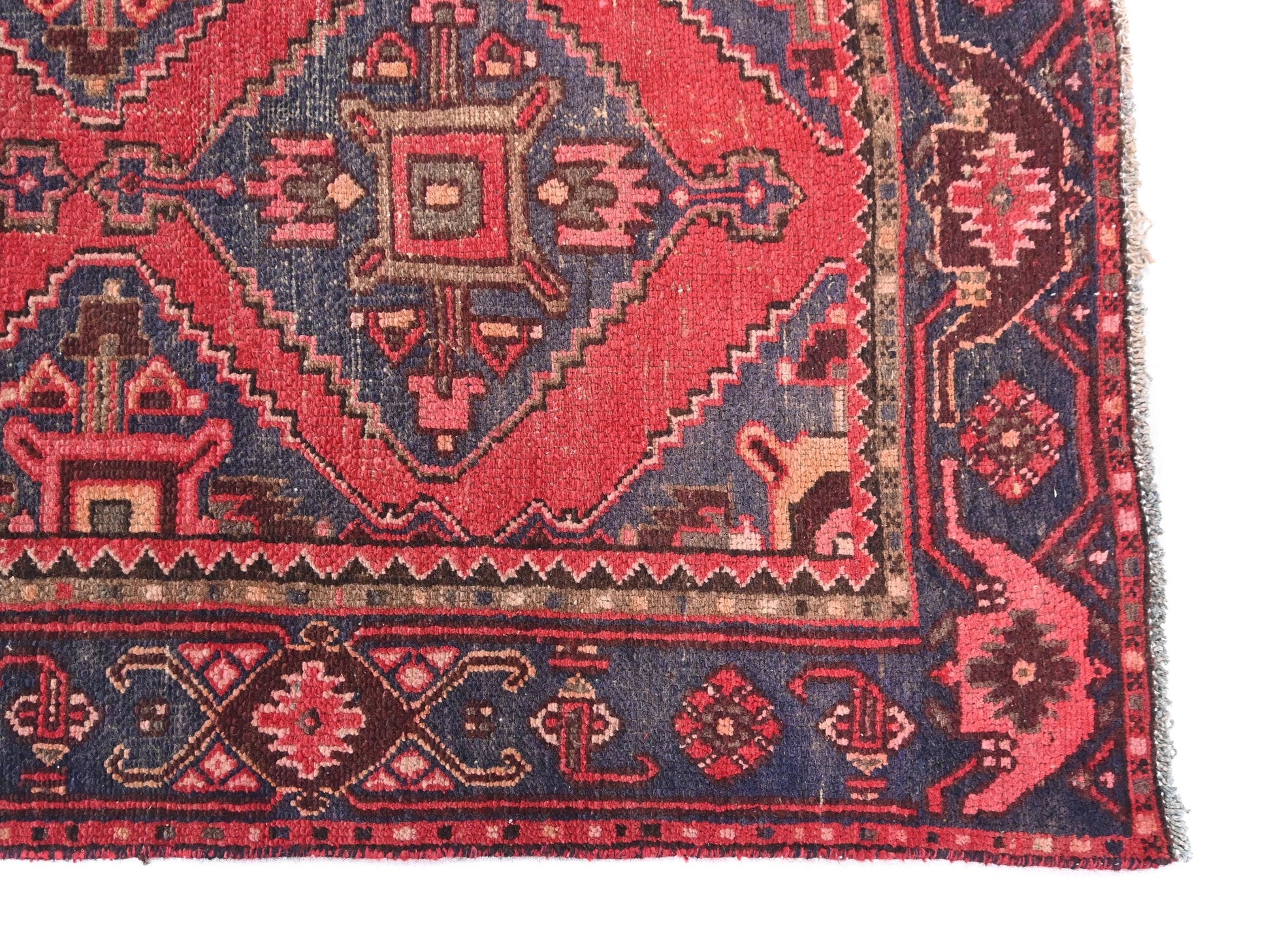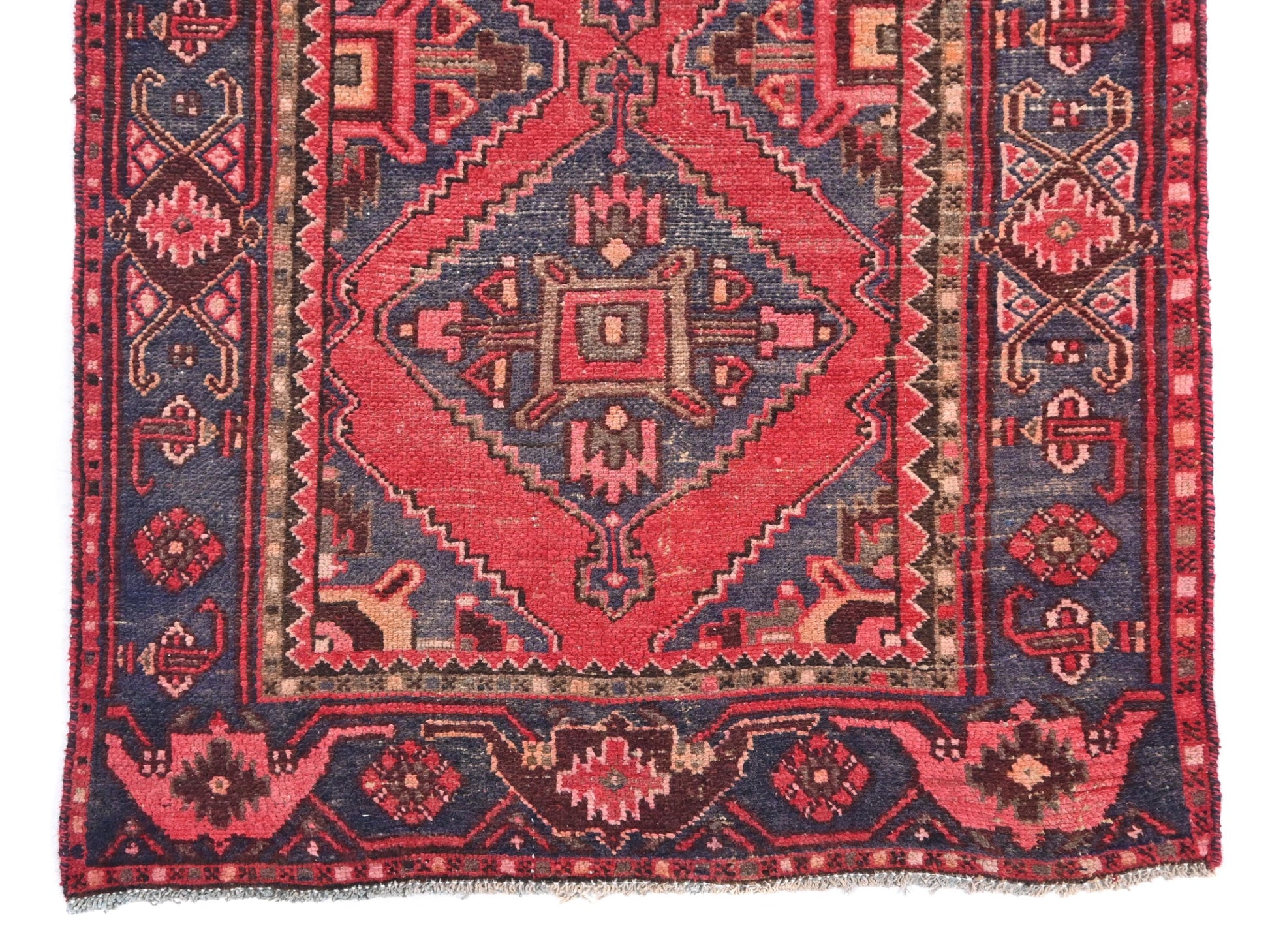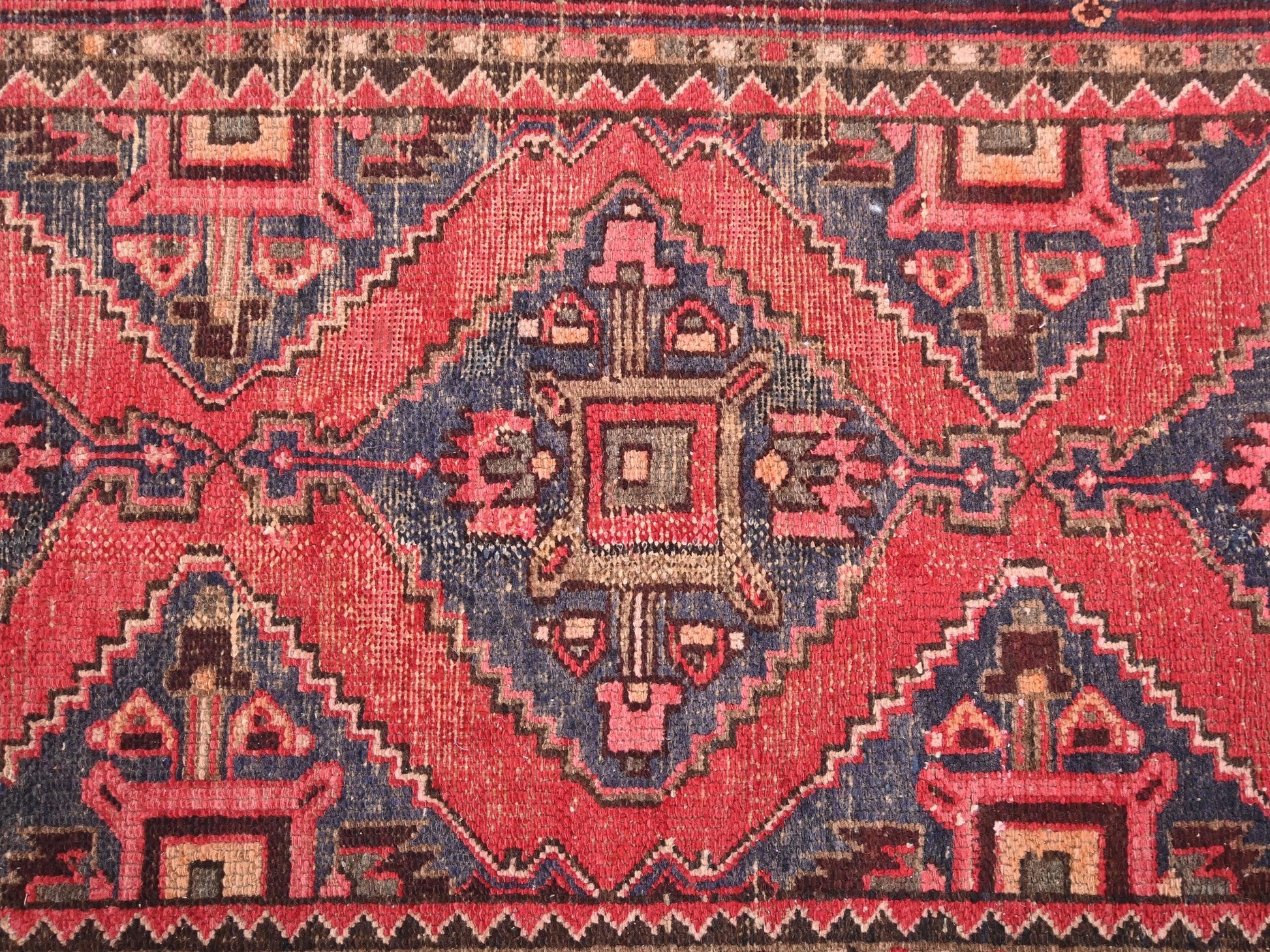 3x12 Handmade Turkish Vintage Tribal Rug | Bold Red & Navy Diamond Chain | Boho Rug, Antique Anatolian Rug | SHR-675 | From 1980 |