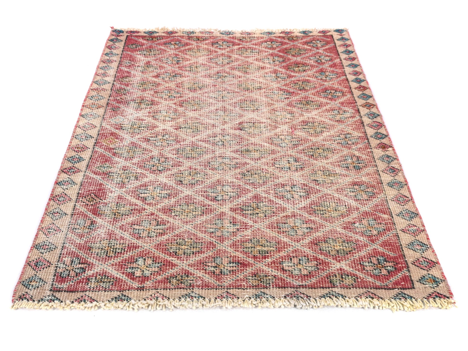 3x4 Handmade Turkish Vintage Rug | Rich Mauve Diamond Matrix | Boho Rug, Antique Rug | SHR547 | SHR547