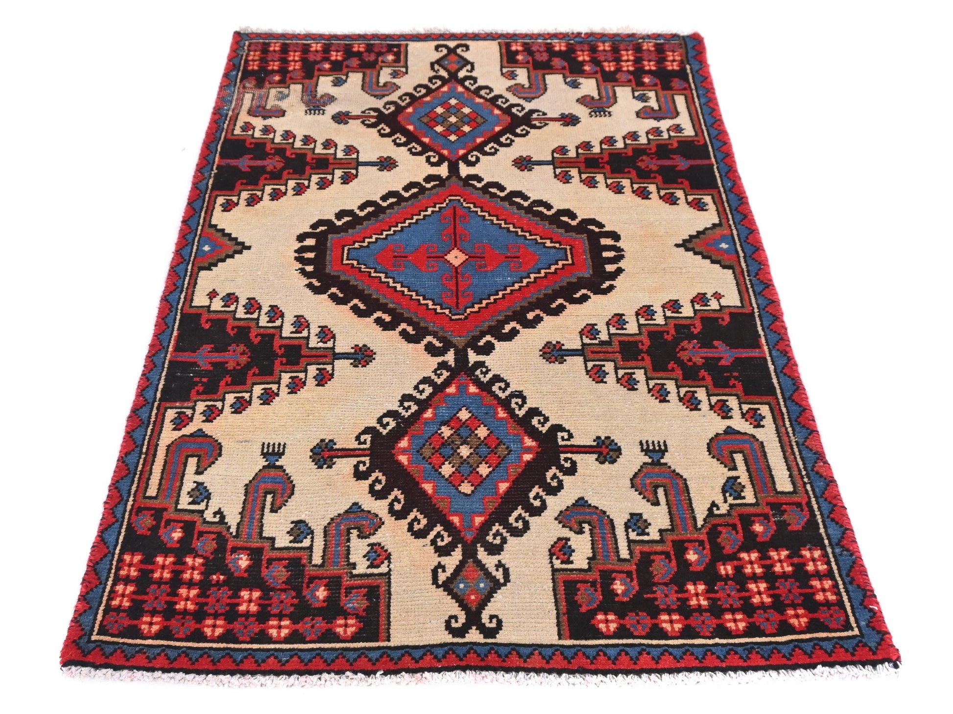 3x4 Handmade Turkish Vintage Tribal Rug | Emblematic Central Medallion | Boho Rug, Antique Rug | SHR566 | From 1970