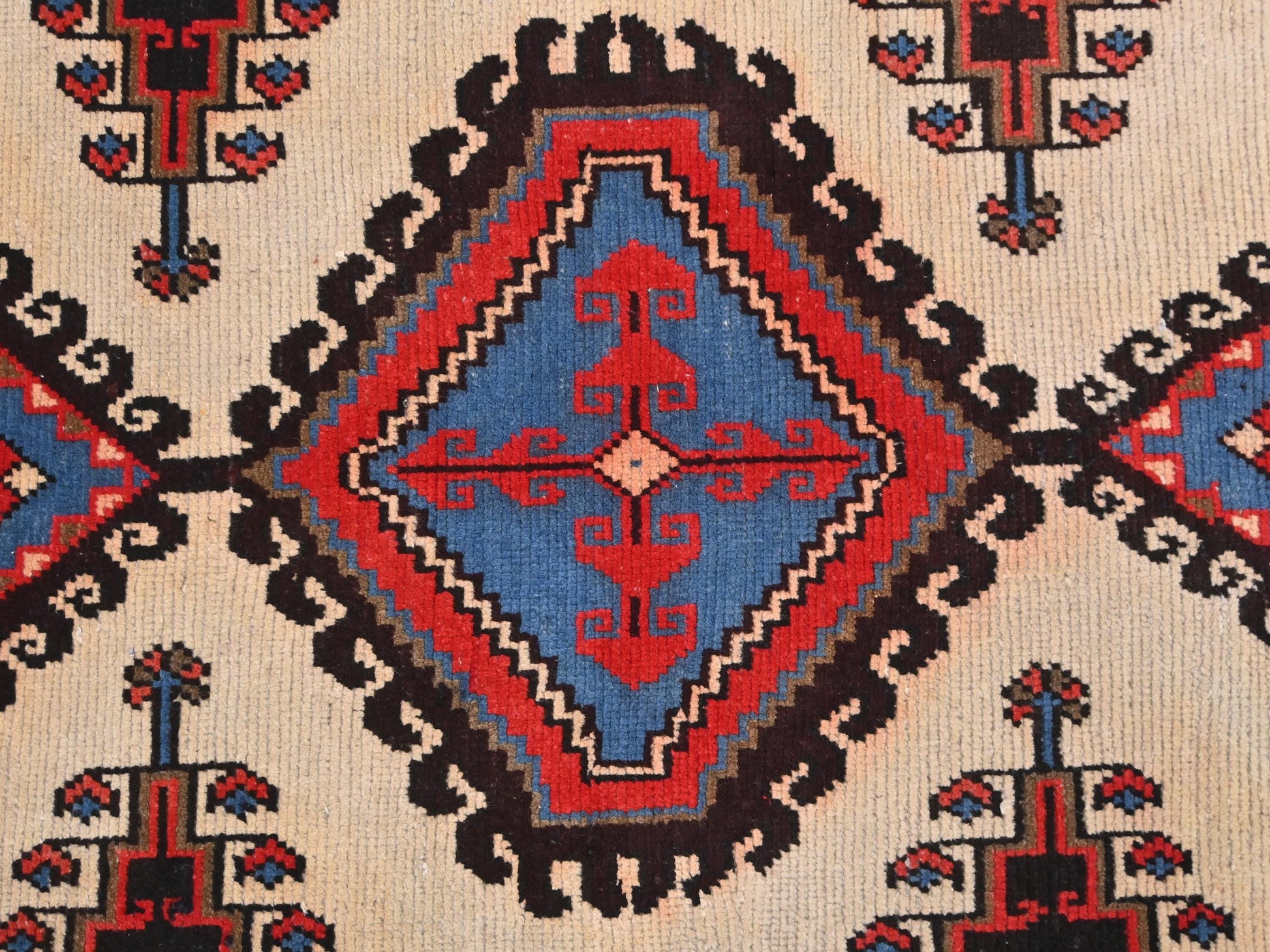 Discover the historic charm of the Emblematic Central Medallion rug. Crafted in the heart of Turkey, this rug features a striking central medallion flanked by intricate tribal motifs, symbolizing the rich cultural heritage of the region. The bold red and deep blue hues create a dynamic visual focus, offering both warmth and sophistication to your living space. Perfect for those who cherish both art and history, this rug brings an authentic piece of Anatolian legacy into your home, blending seamlessly with both contemporary and traditional decors.