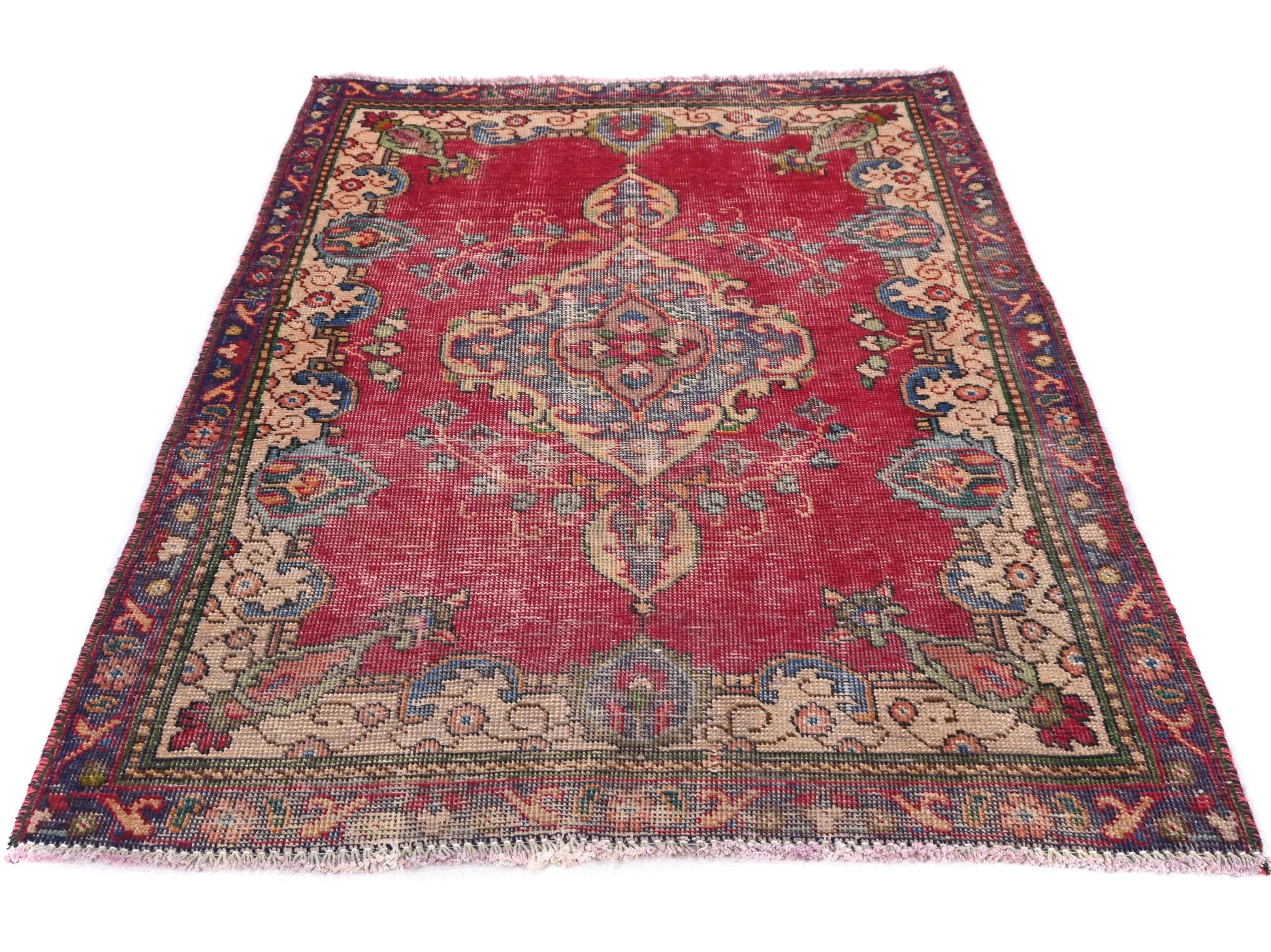 3x5 Handmade Turkish Vintage Tribal Rug | Central Intricate Flower Medallion | Boho Rug, Antique Rug | SHR546 | From 1970