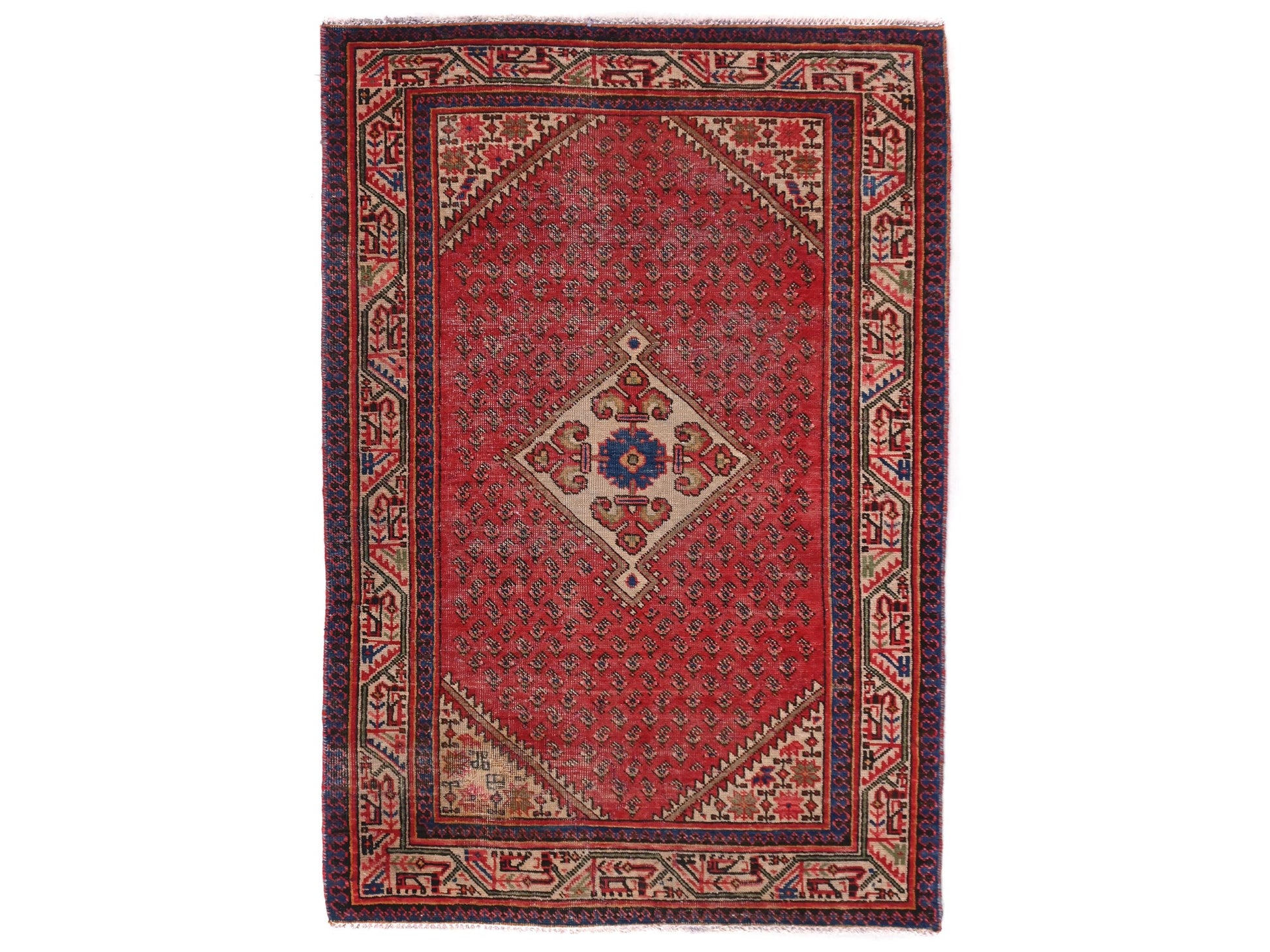 3x5 Handmade Turkish Vintage Tribal Rug | Central Radiant Floral Medallion | Boho Rug, Antique Rug | SHR548 | From 1970