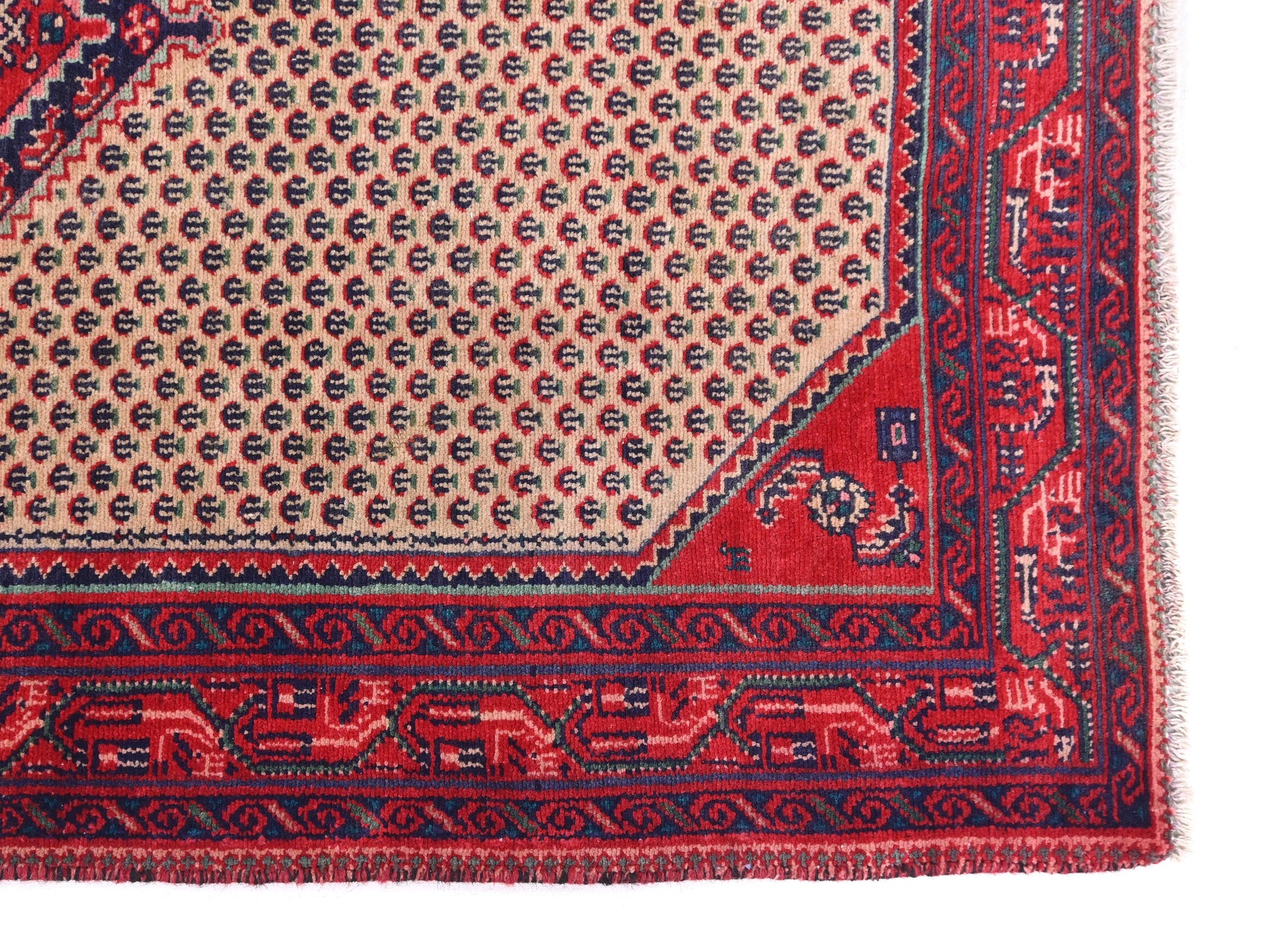 The SHR576 is a masterclass in symmetry and spacing, where the deep navy and cherry red borders provide a bold contrast to the soft neutrality of the interior. Ideal for refined interiors craving character and clarity, this piece bridges past and present with poise. Whether under a coffee table or anchoring a hallway, it radiates craftsmanship and cultural story in every thread.
