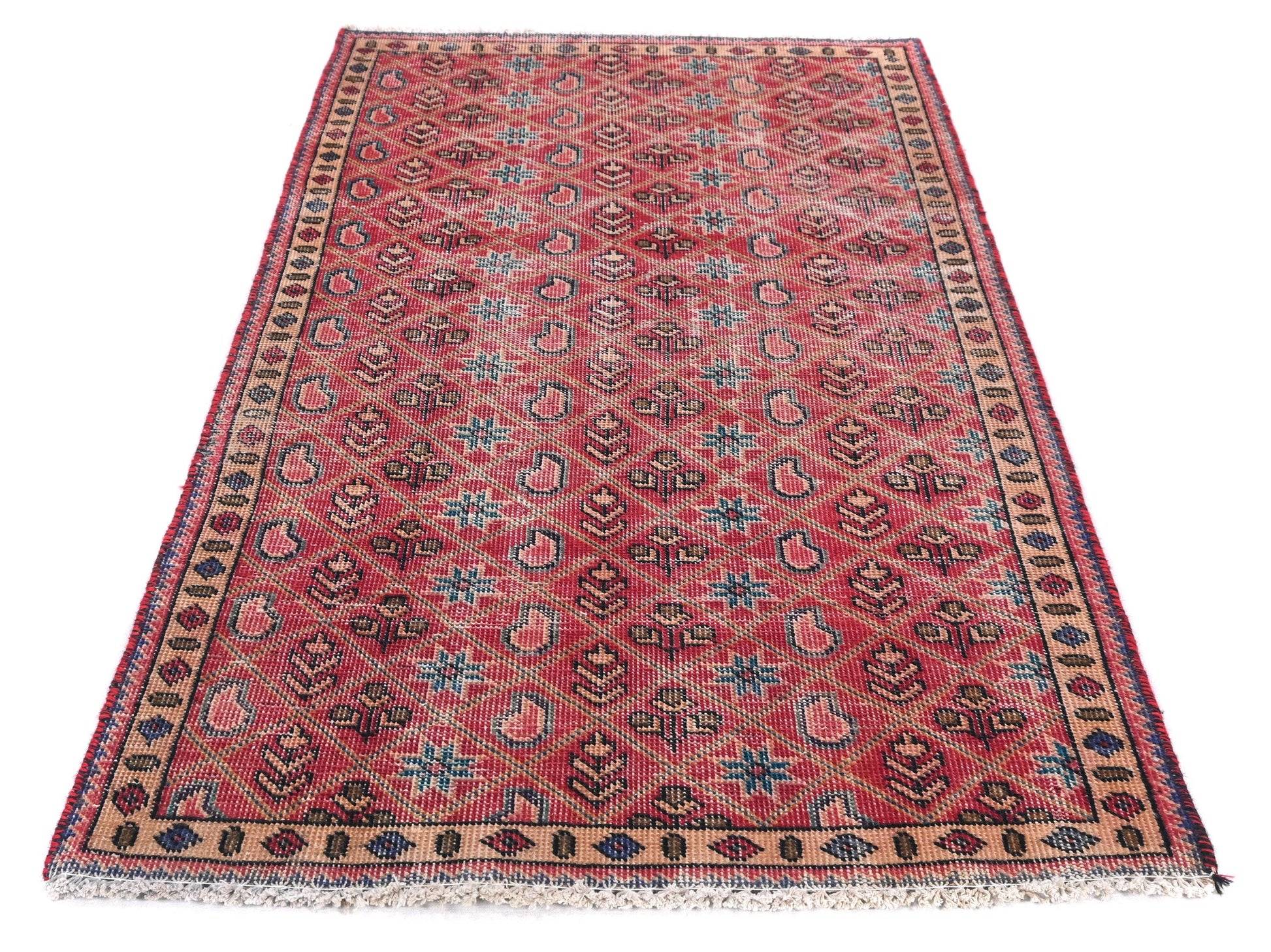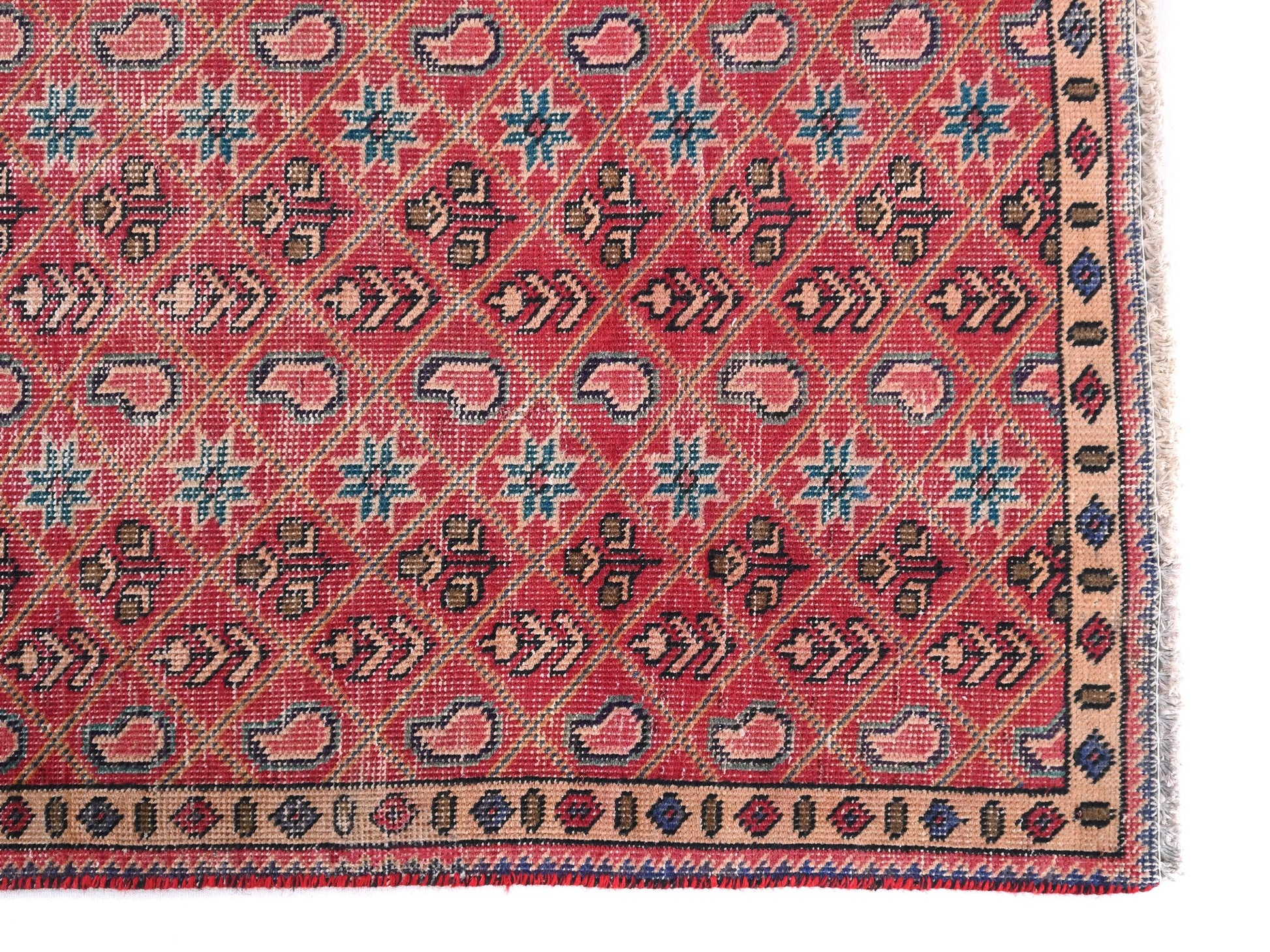 3x5 Handmade Turkish Vintage Tribal Rug | Rosette Paisley Star-field In Soft Red | Boho Rug, Antique Rug | SHR545 | From 1970