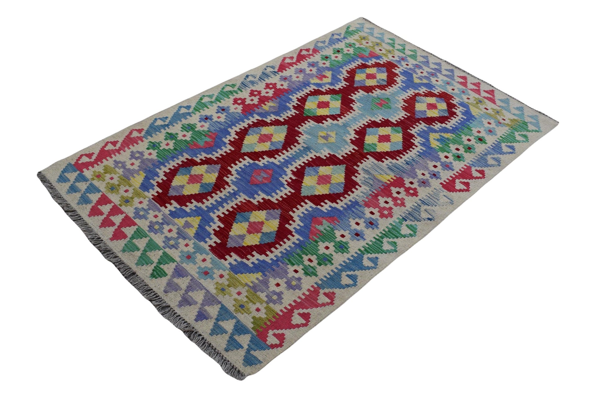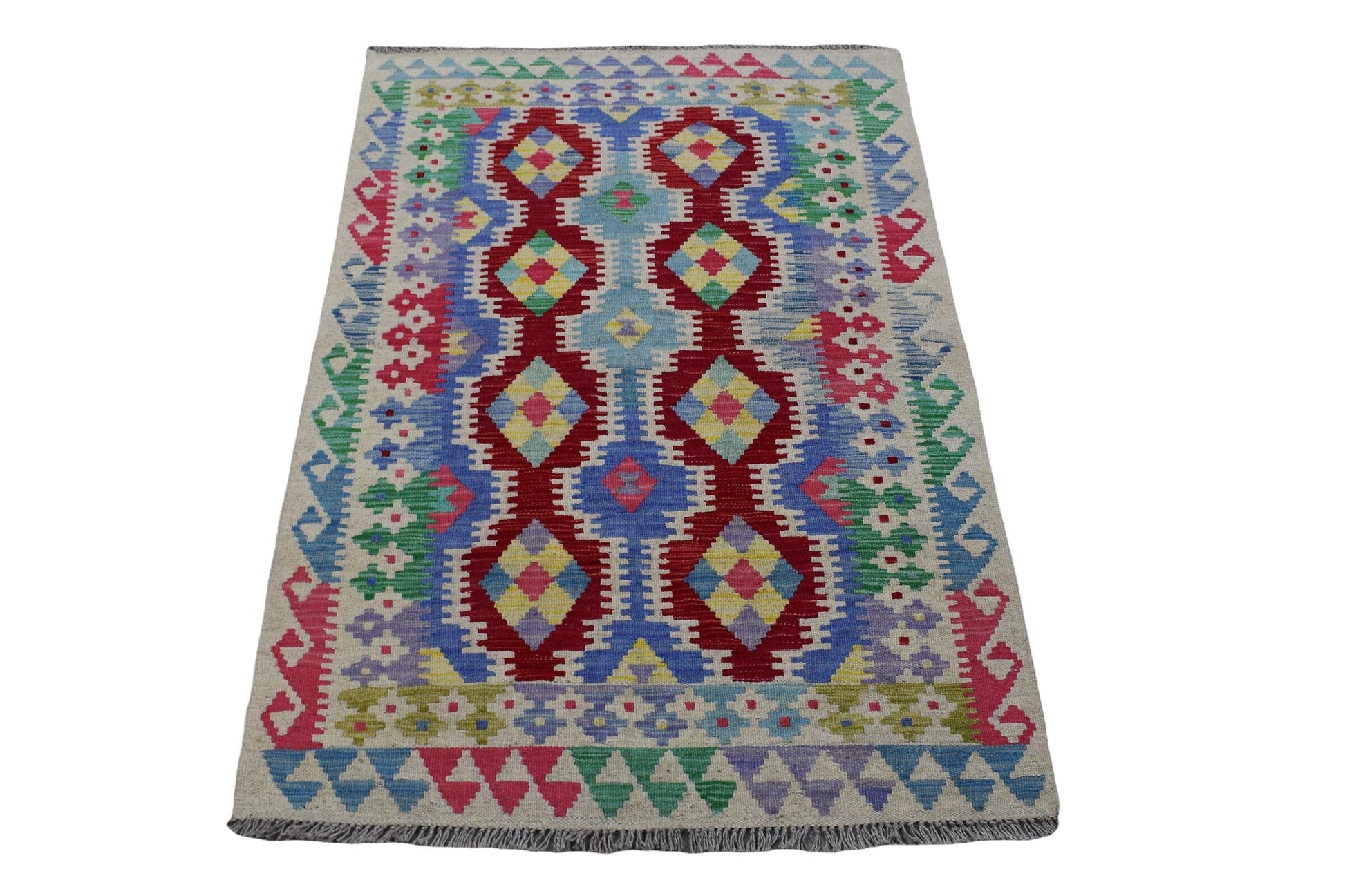 3X5 Turkish Vintage Kilim Rug | Handmade Wool Area Rug | Handwoven Artistic Carpet for Living Room, Bedroom, Kitchen (3.18 x 5.09 ft)