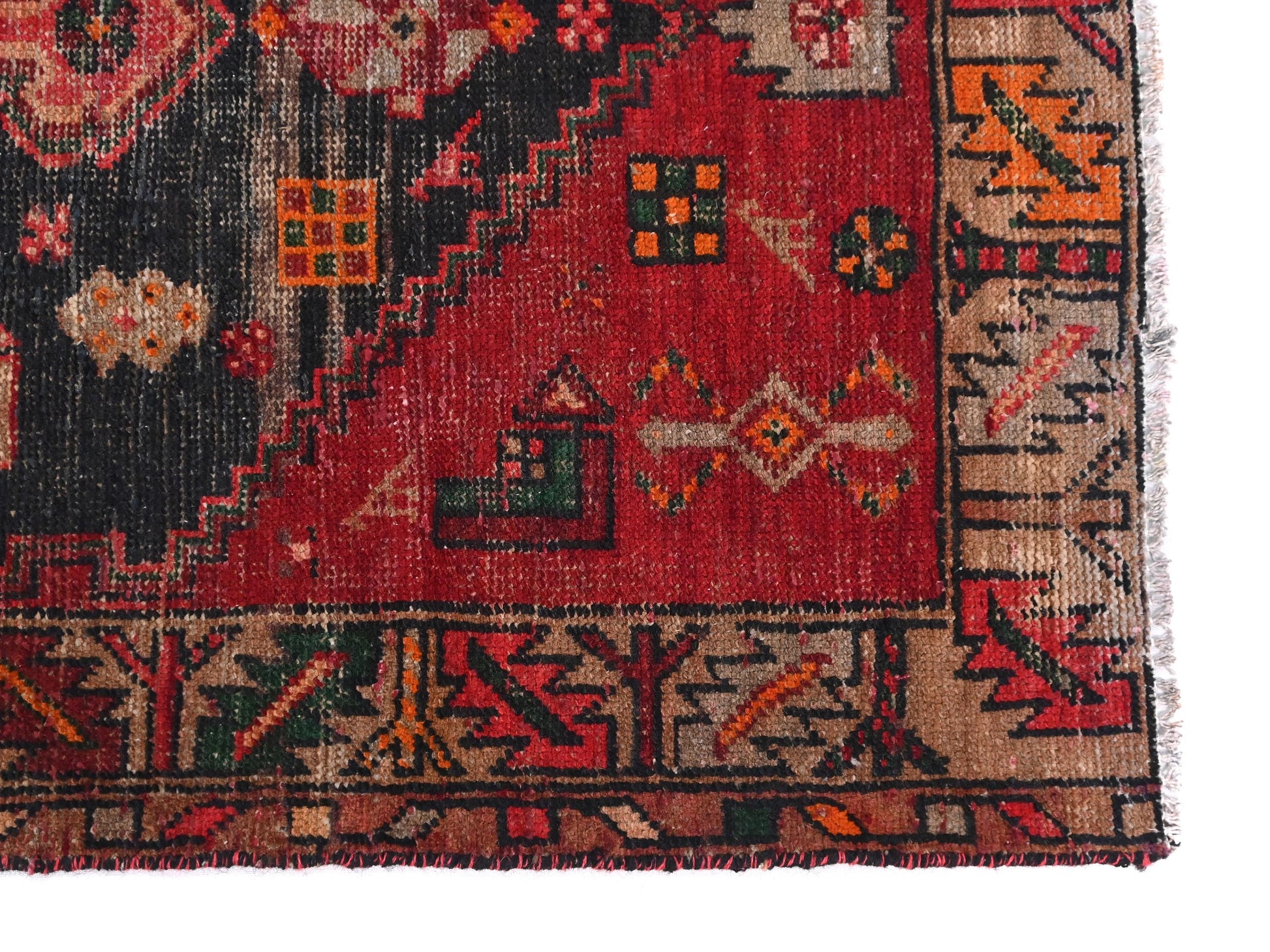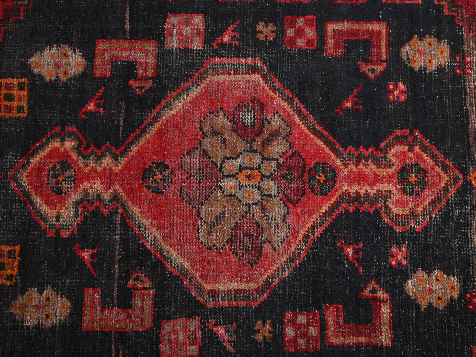This rug was knotted over a century ago, yet its intensity hasn't dulled. The patina of age has softened the palette just enough to whisper elegance, while the structure screams confidence. A striking centerpiece for modern and rustic spaces alike — raw, rare, and regal.