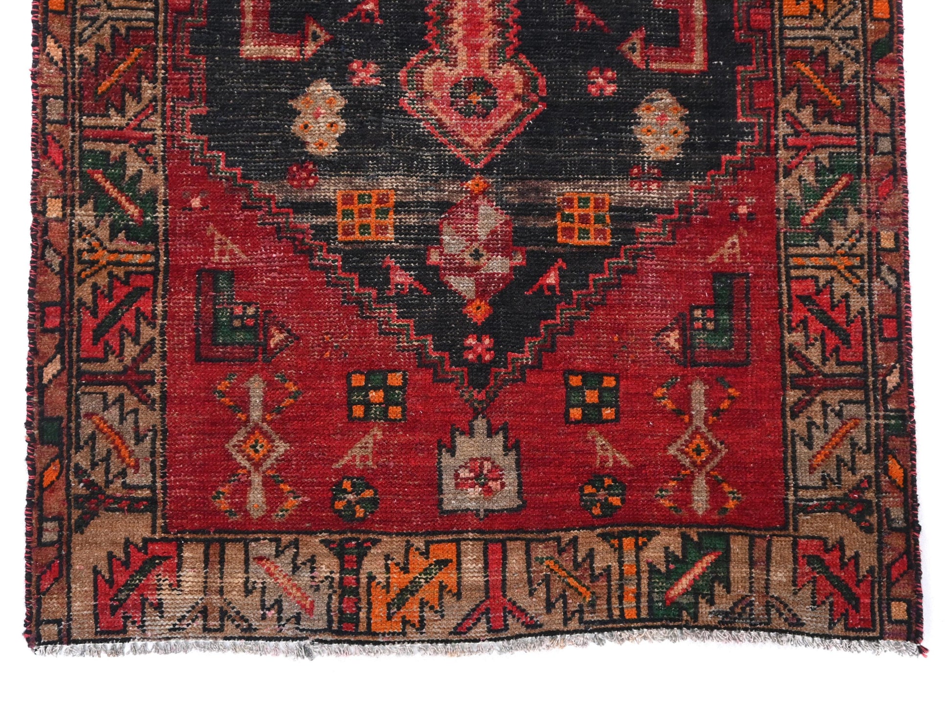 3x6 Handmade Turkish Vintage Tribal Rug | Black Diamond Bloom in Midnight Garden | Boho Rug, Antique Anatolian Rug | SHR495 | From 1970