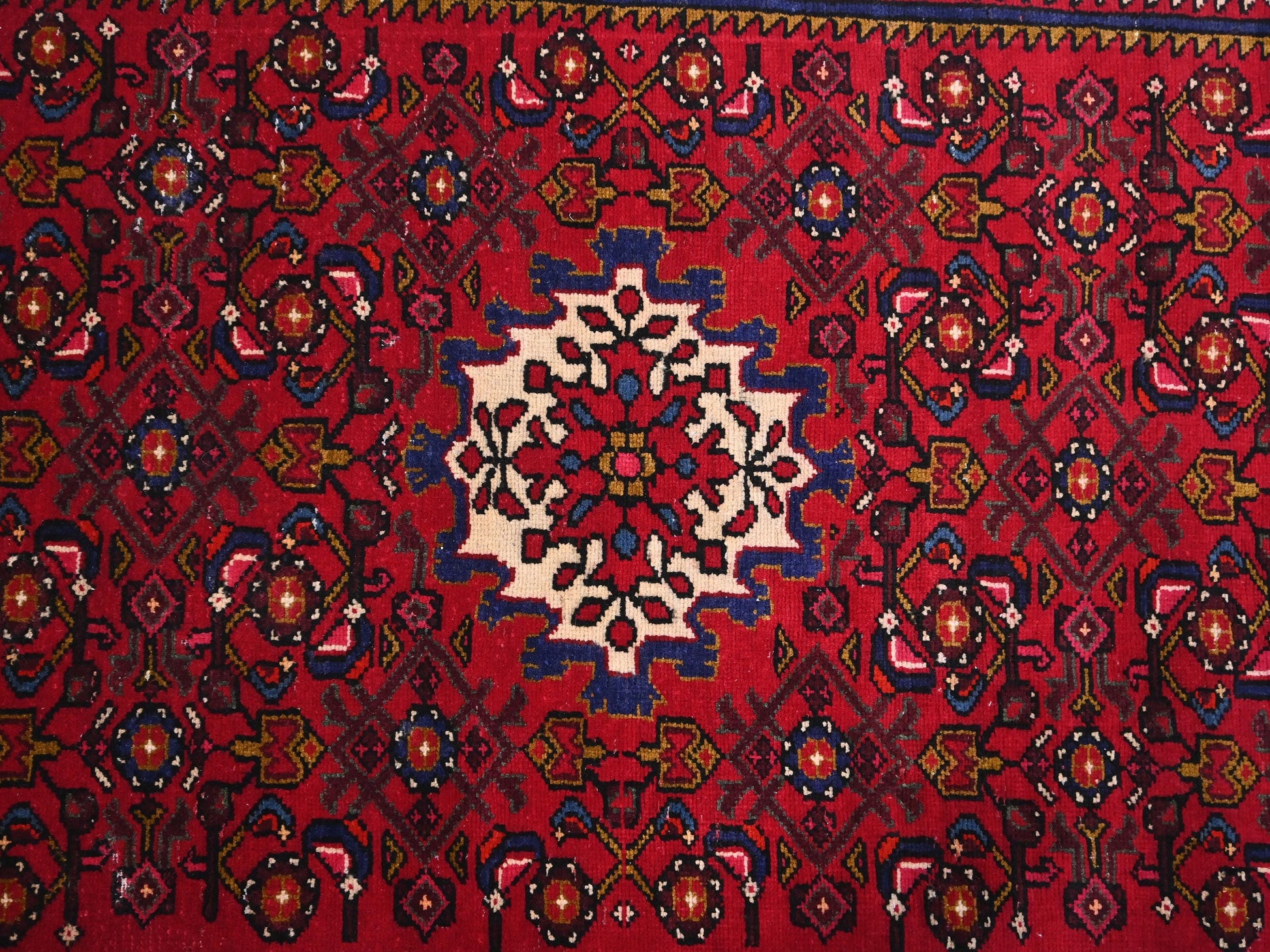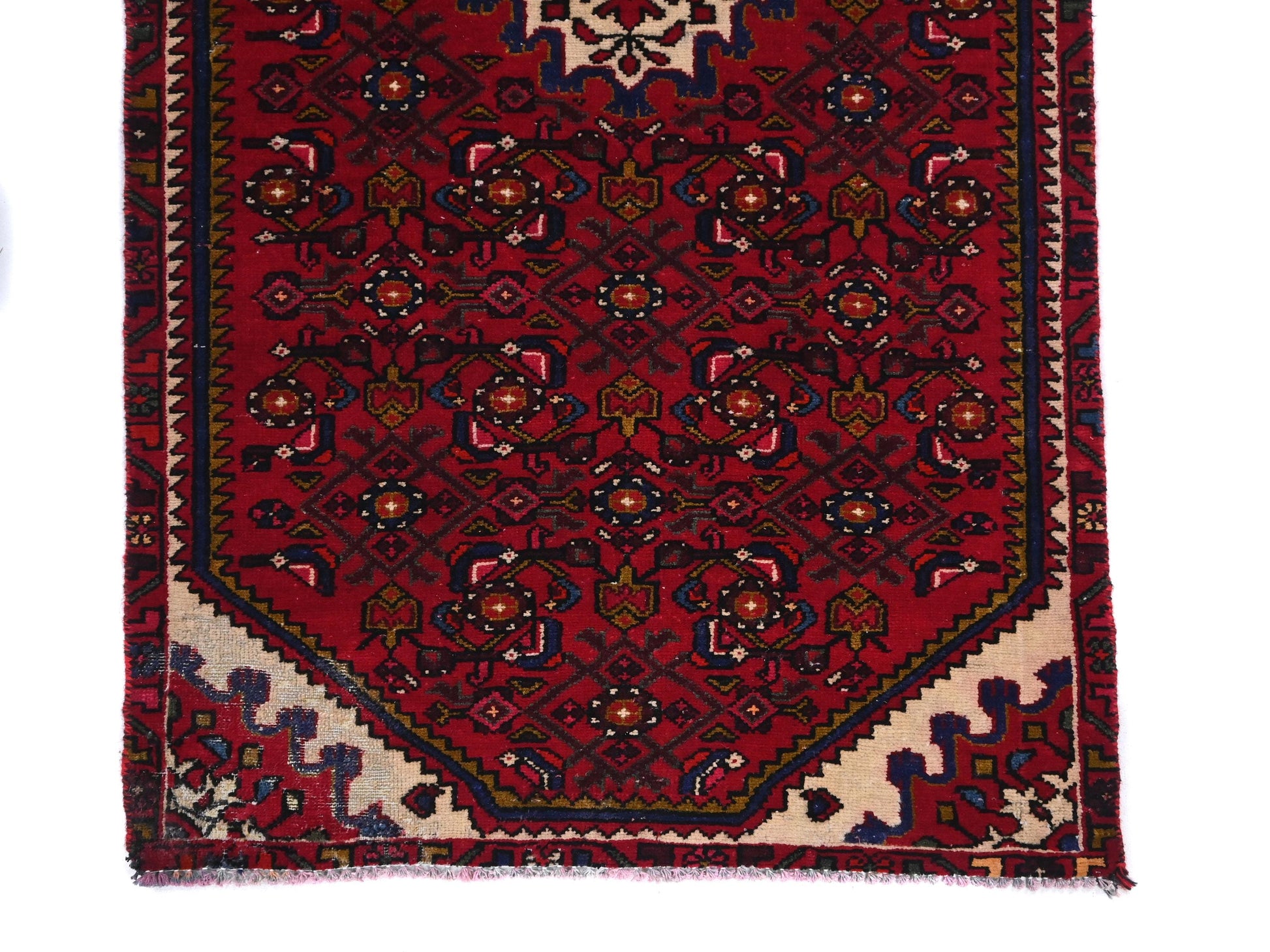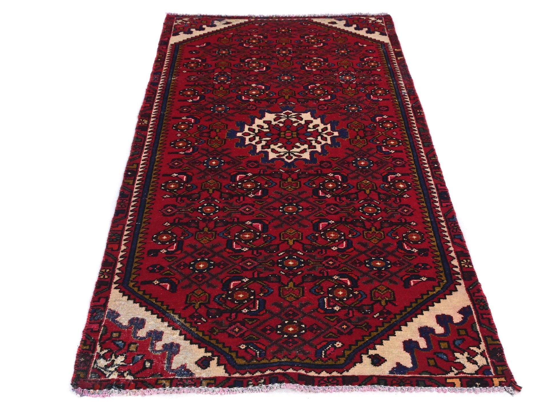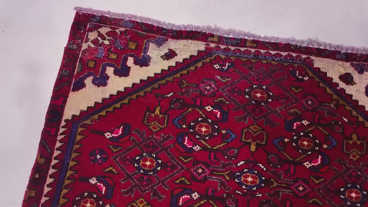 3x6 Handmade Turkish Vintage Tribal Rug | Crimson Diamond & Floral Central Medallion | Boho Rug, Antique Anatolian Rug | SHR404 | From 1980