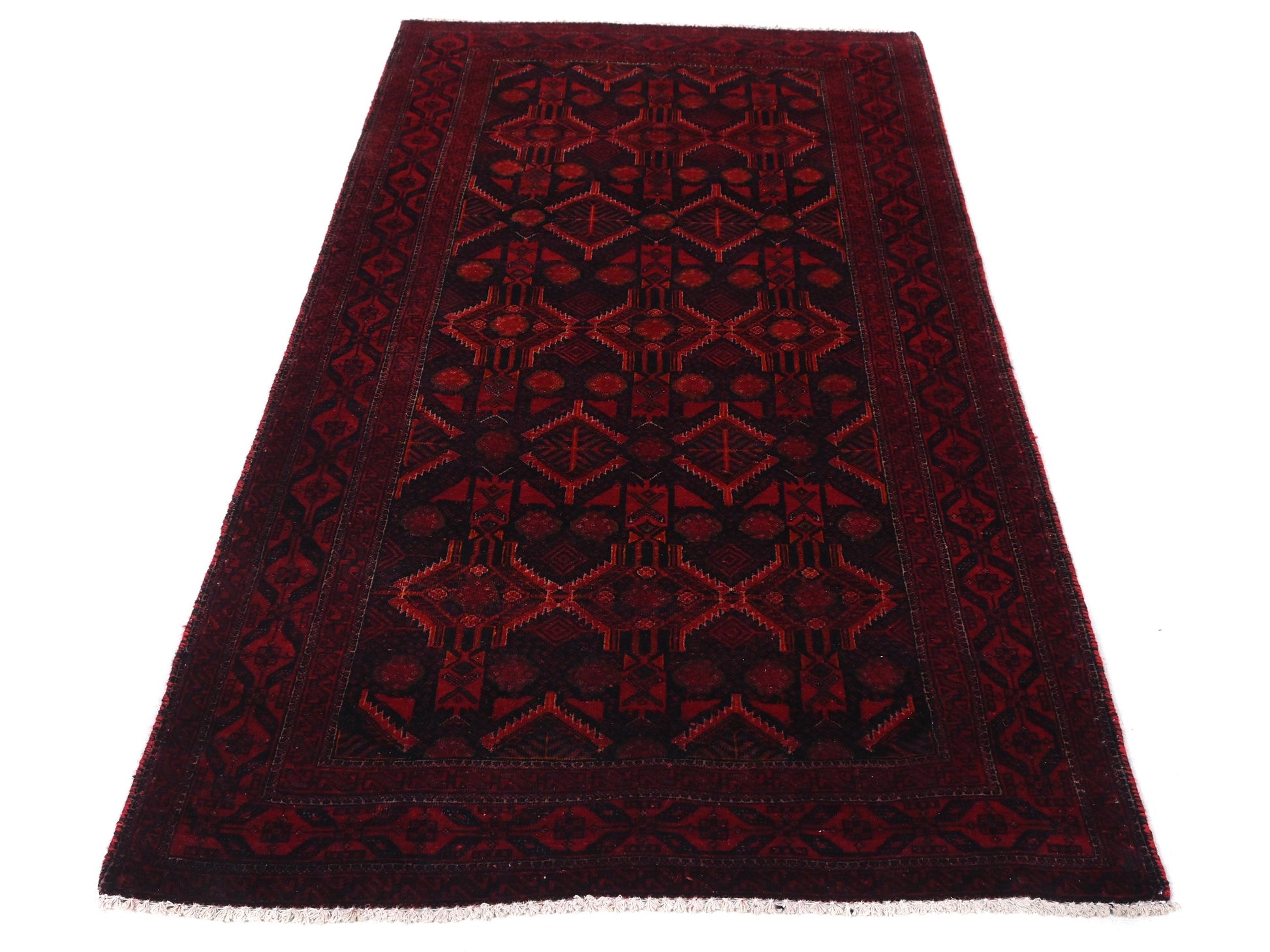 3x6 Handmade Turkish Vintage Tribal Rug | Deep Garnet Diamond Trellis | Boho Rug, Antique Anatolian Rug | SHR501 | From 1970