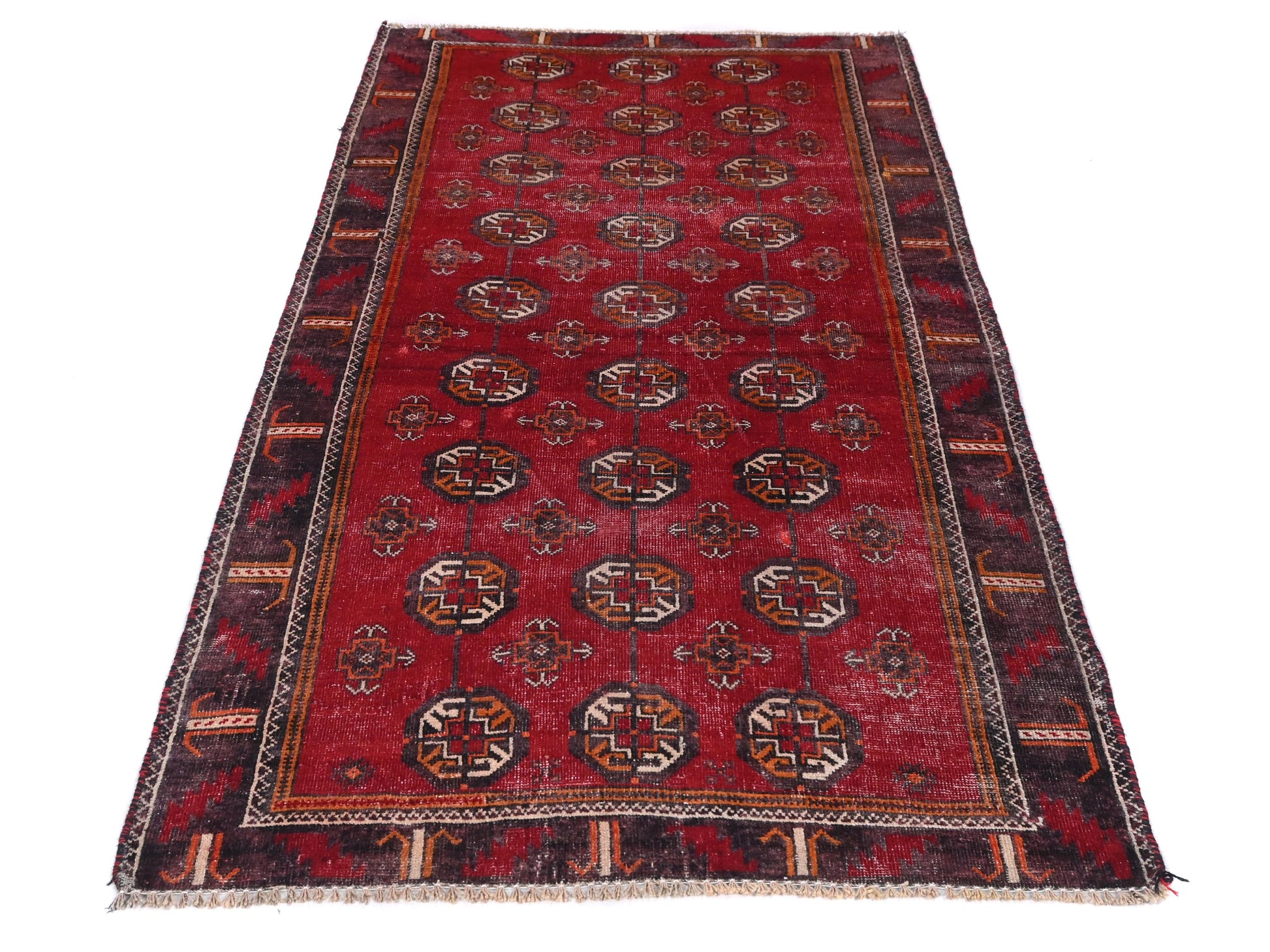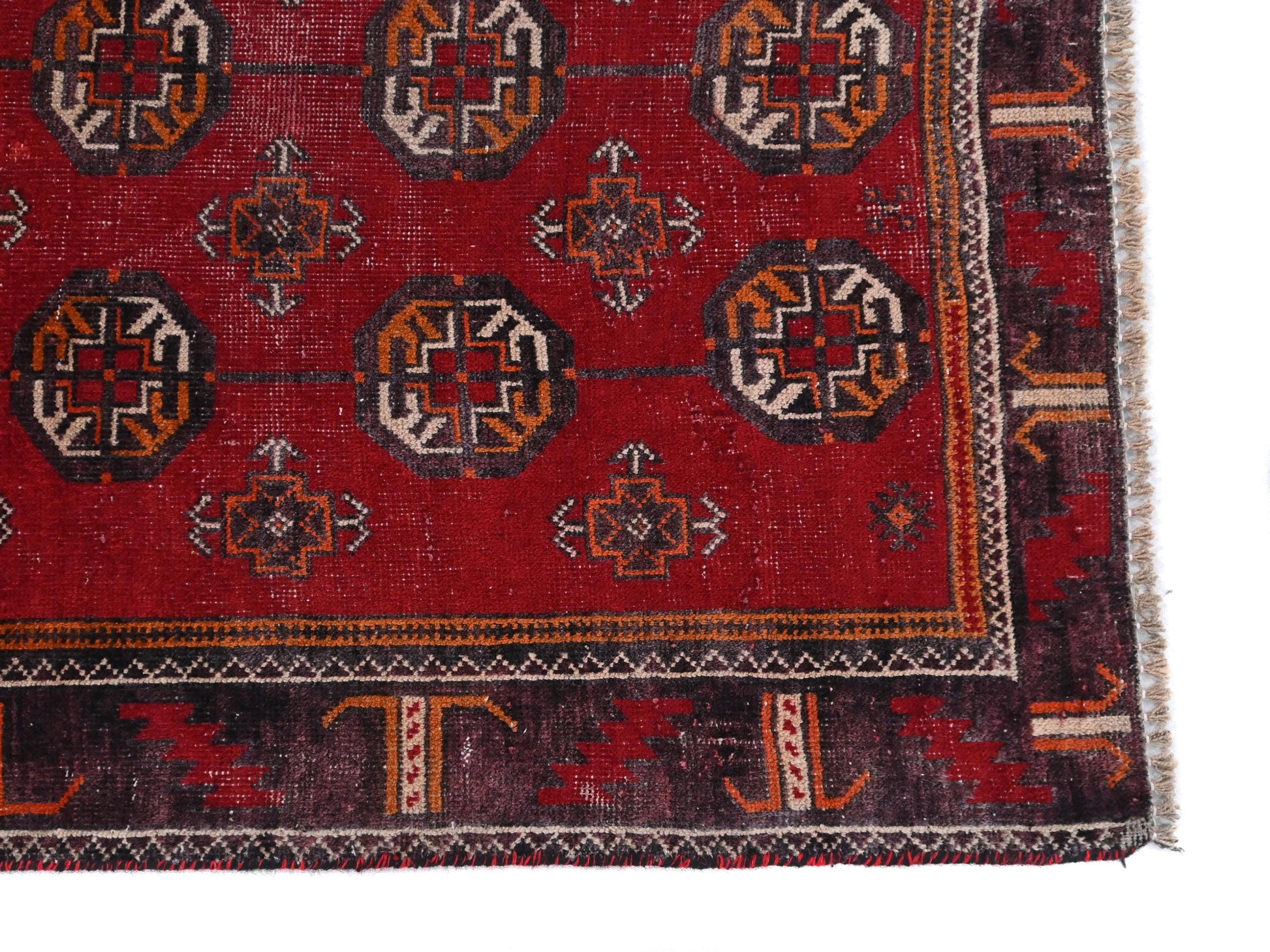 3x6 Handmade Turkish Vintage Tribal Rug | Octagonal Crimson Field | Boho Rug, Antique Anatolian Rug | SHR-406 | From 1980