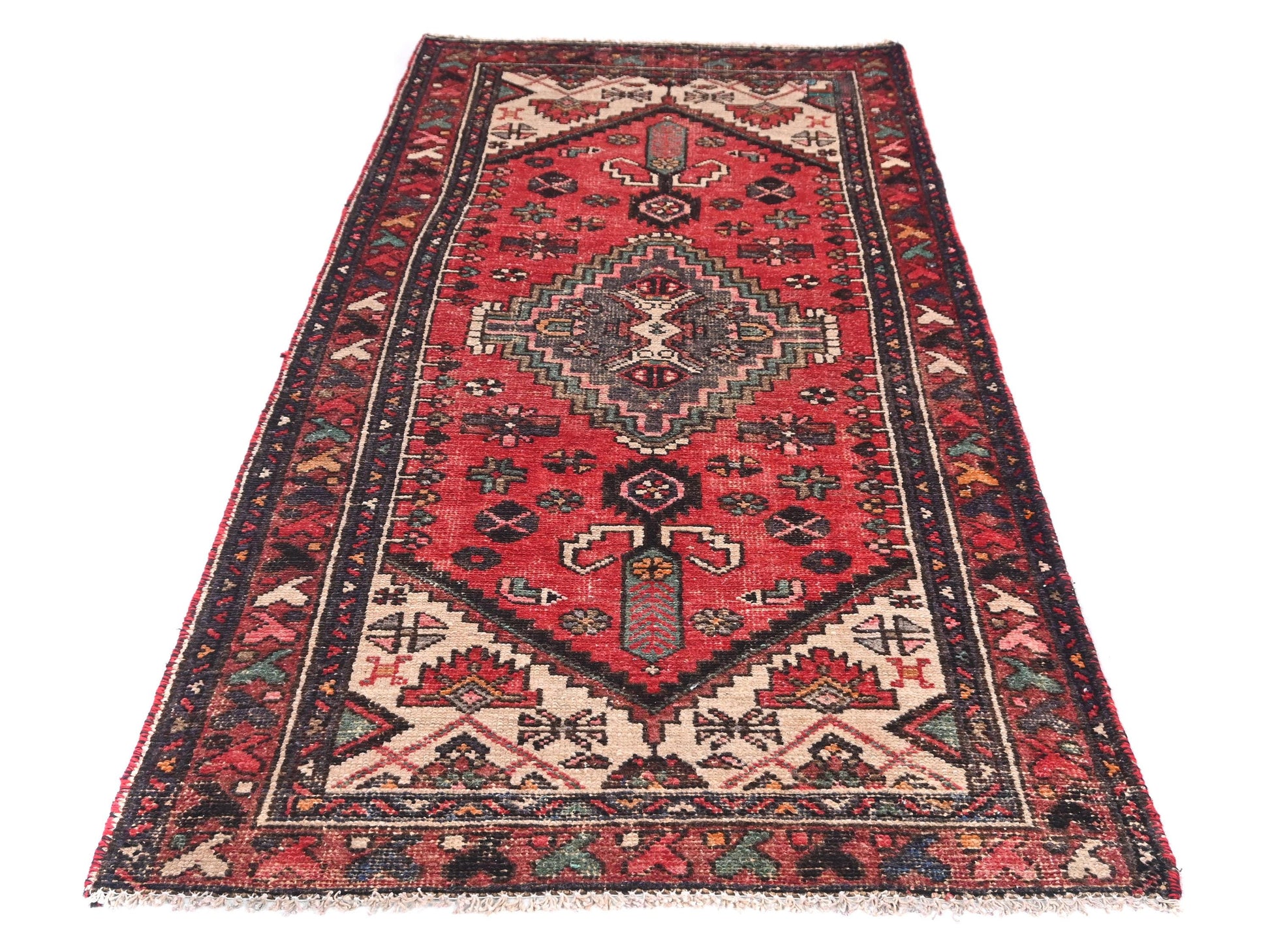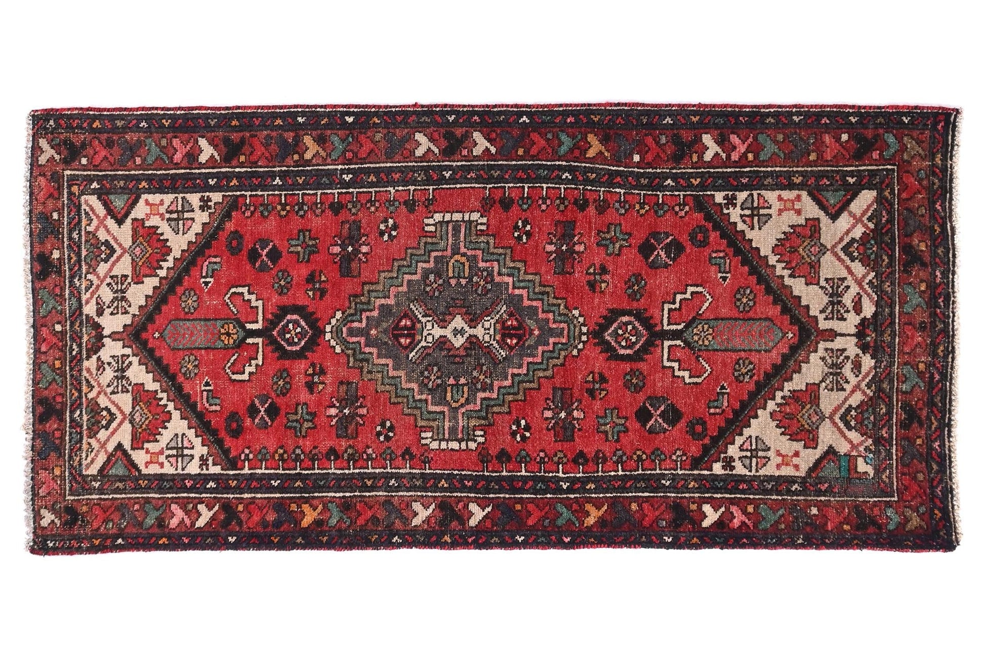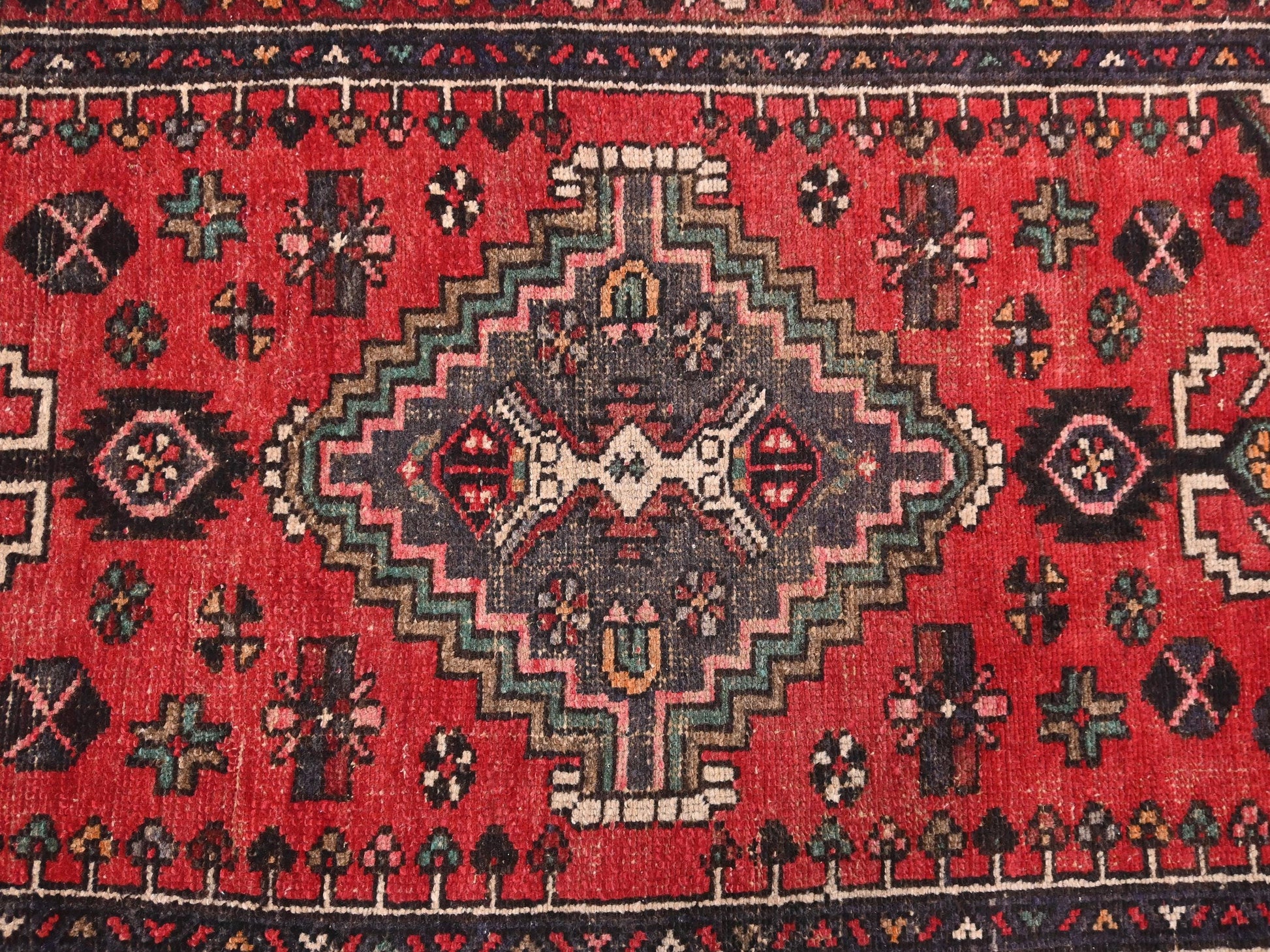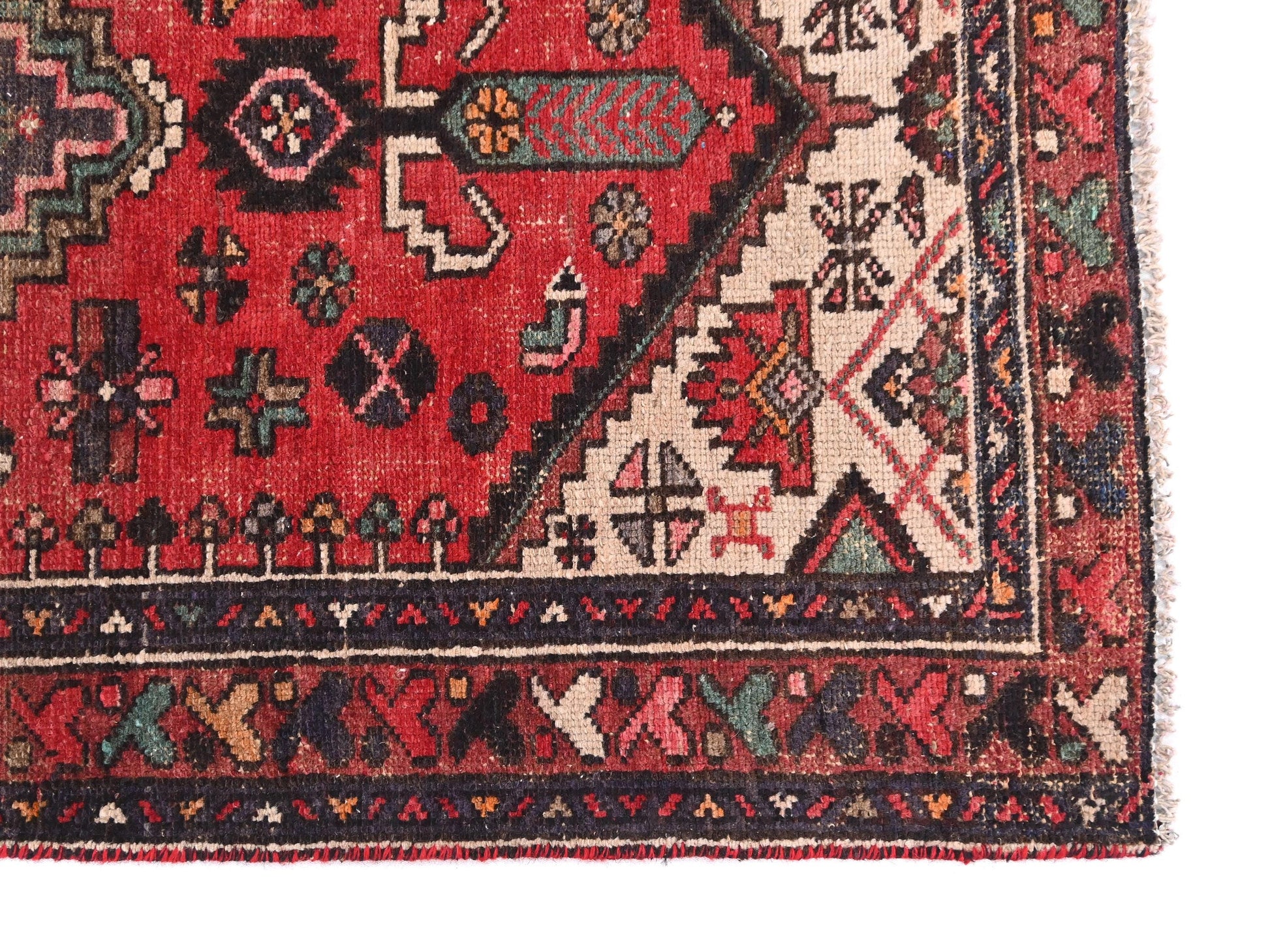 3x6 Handmade Turkish Vintage Tribal Rug | Red Ground With Latch Hook Medallion | Boho Rug, Anatolian Rug | SHR433 | From 1980