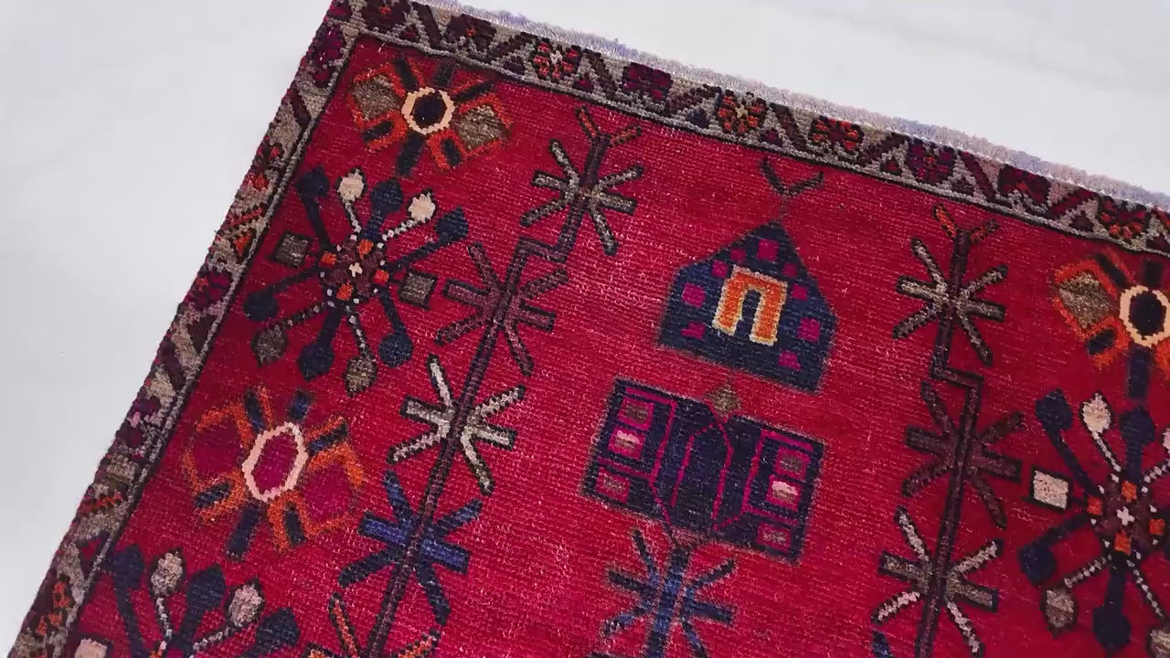 3x6 Handmade Turkish Vintage Tribal Rug | Starburst Symbols on Crimson Embers | Boho Rug, Antique Anatolian Rug | SHR488 | From 1970