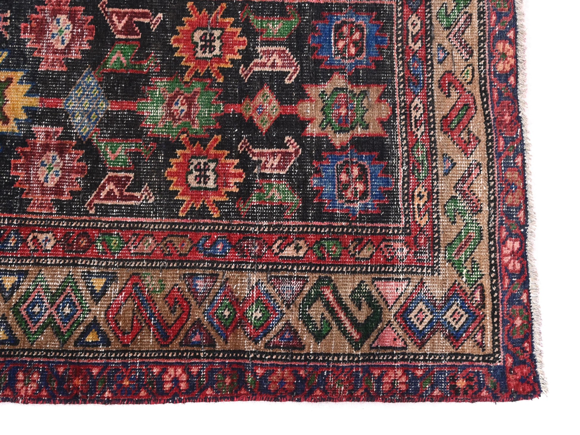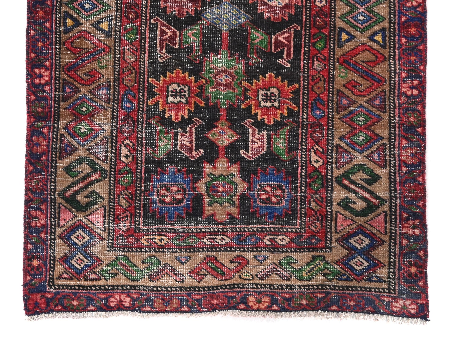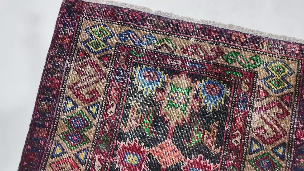 The wool's natural dye has aged beautifully, enhancing the rug's aesthetic appeal while preserving its rich colors and intricate details. This rug is not only a stunning decorative piece but also a slice of history, perfect for adding a touch of elegance and historical charm to any modern or traditional space. Whether placed in a bedroom, living room, or kitchen, this rug promises to blend seamlessly with both contemporary and vintage decors, making it a timeless addition to your collection.