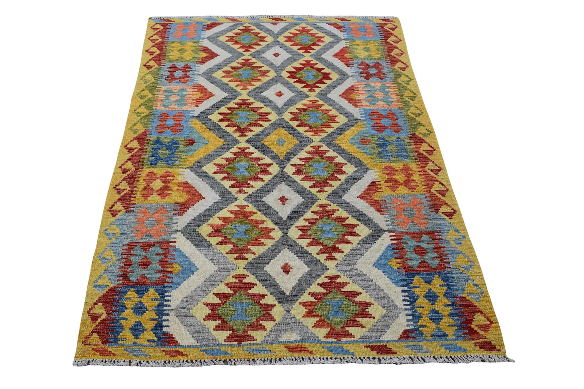 3X6 Turkish Vintage Kilim Rug | Handmade Wool Area Rug | Handwoven Artistic Carpet for Living Room, Bedroom, Kitchen KLM113