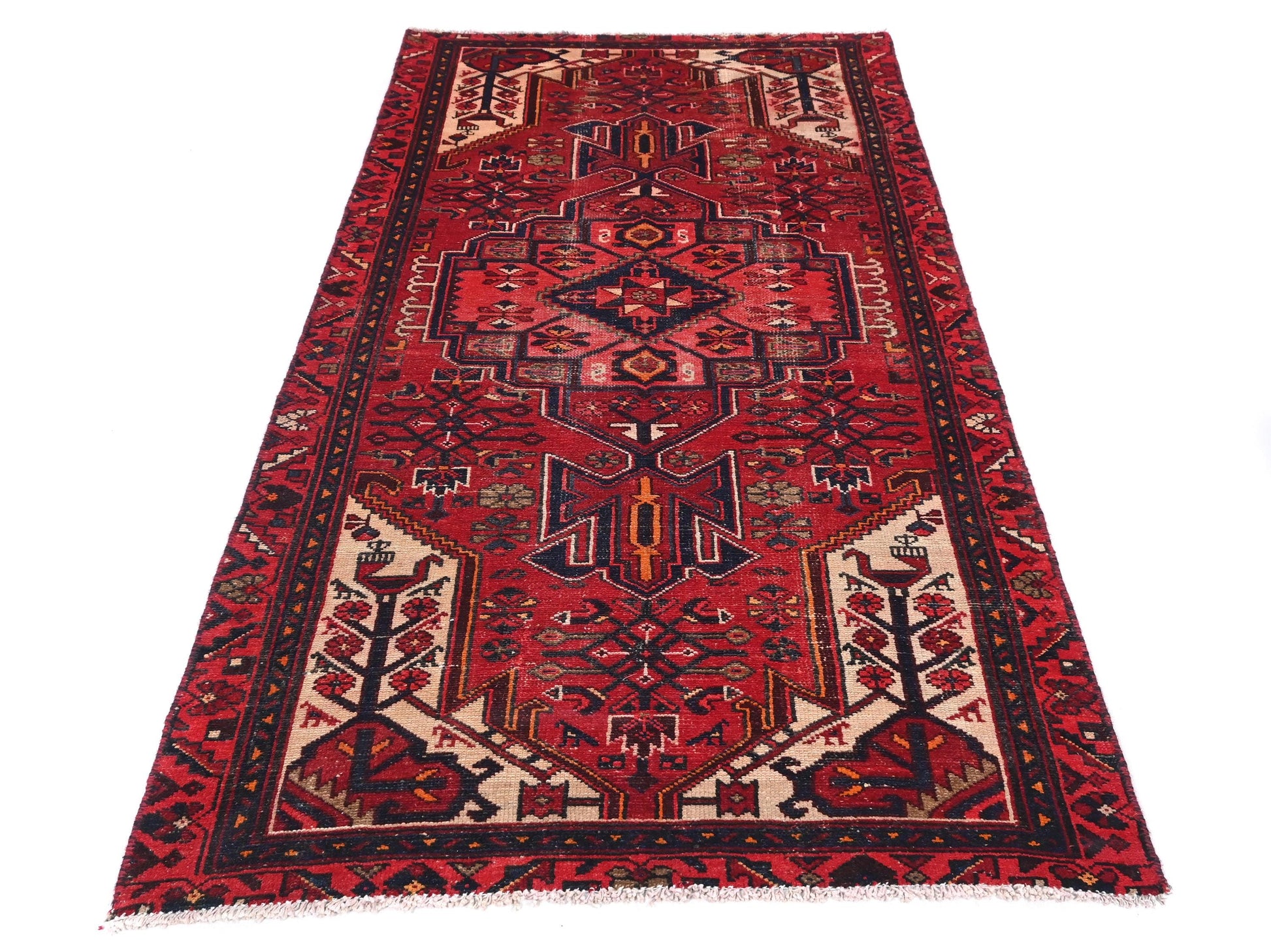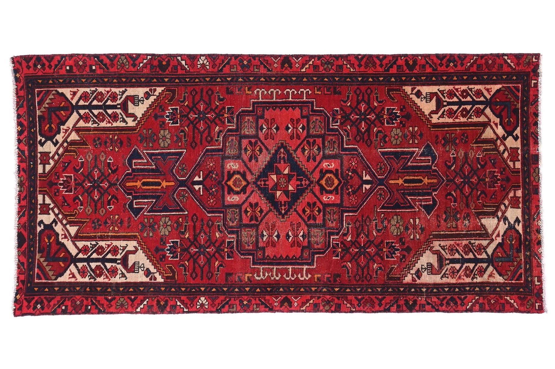 3x7 Handmade Turkish Vintage Tribal Rug | Deep Crimson Star Medallion in Ivory Frame | Boho Rug, Antique Anatolian Rug | SHR472 | From 1970