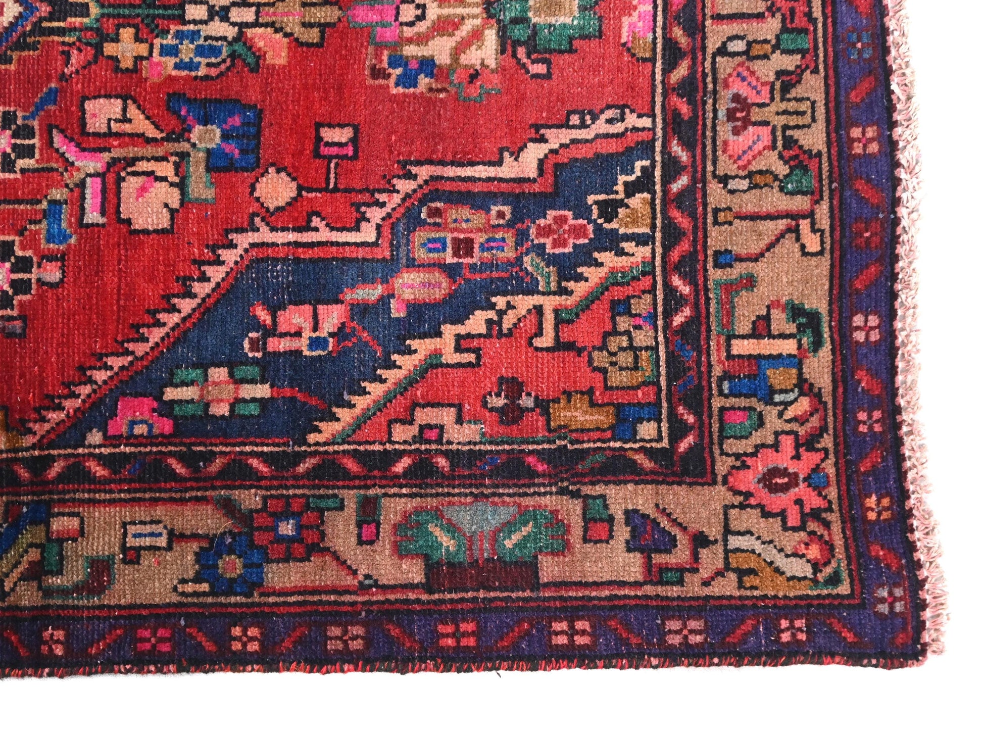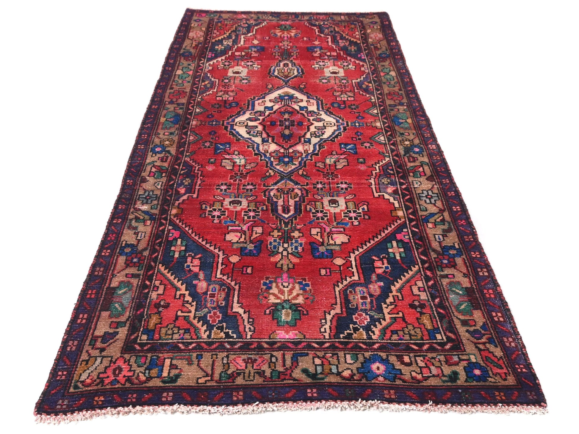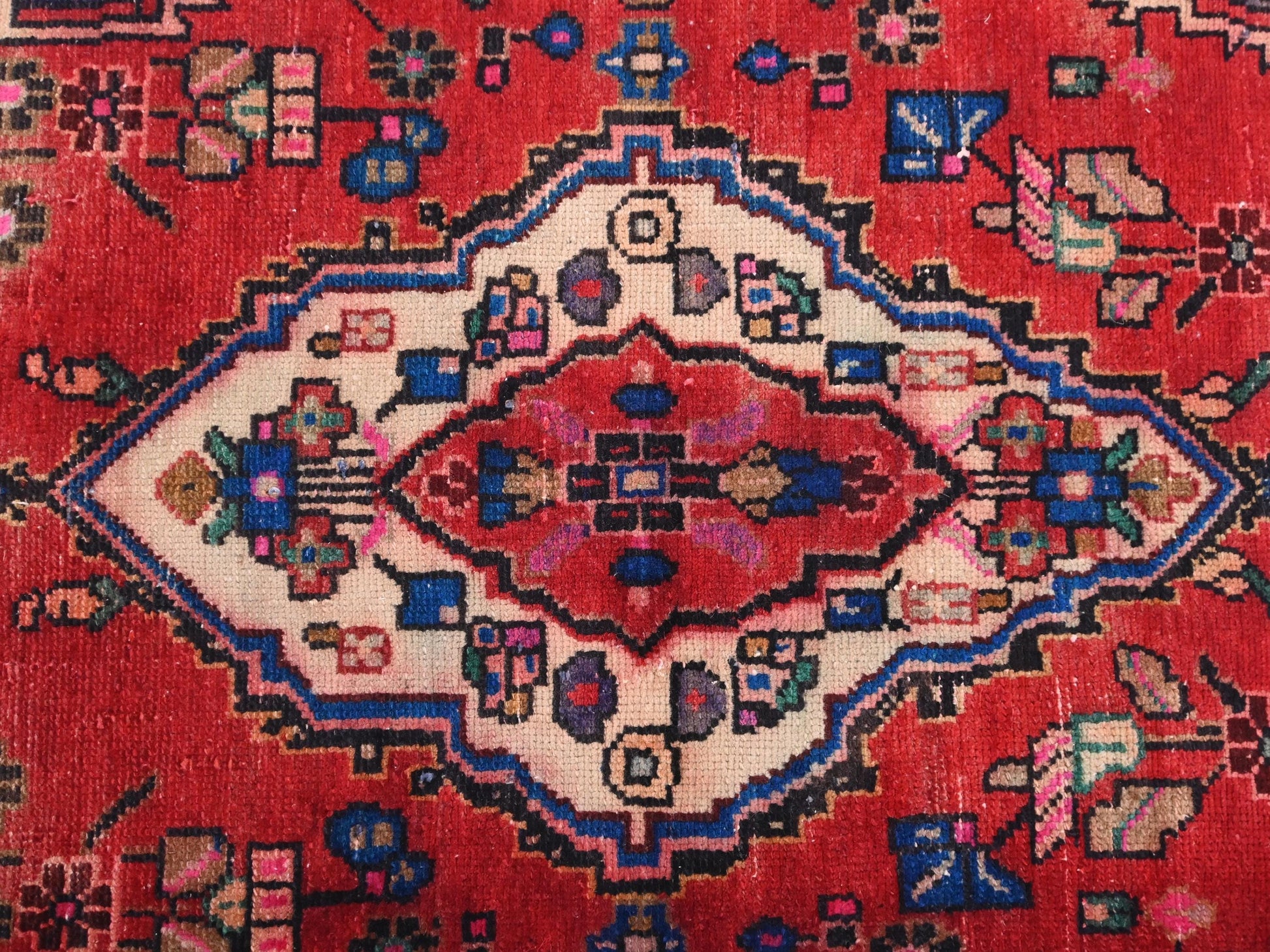 3x8 Handmade Turkish Vintage Tribal Rug | Symmetric Floral Medallions On A Vibrant Red Field | Boho Rug, Anatolian Rug | SHR659 | From 1970