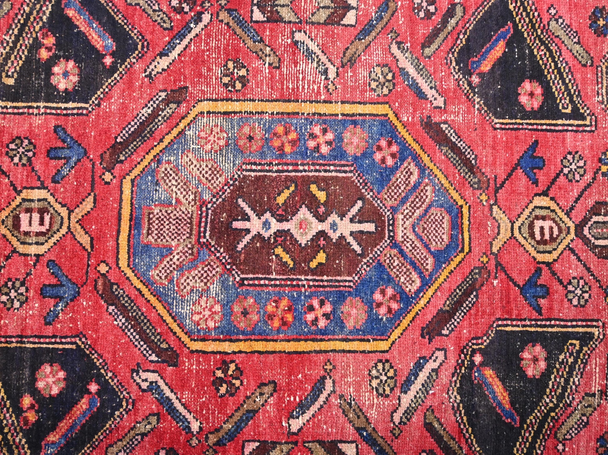 3x9 Handmade Turkish Vintage Tribal Rug | Brick Red Field With Navy & Mauve Geometric Centre | Boho Rug, Anatolian Rug | SHR672 | From 1970