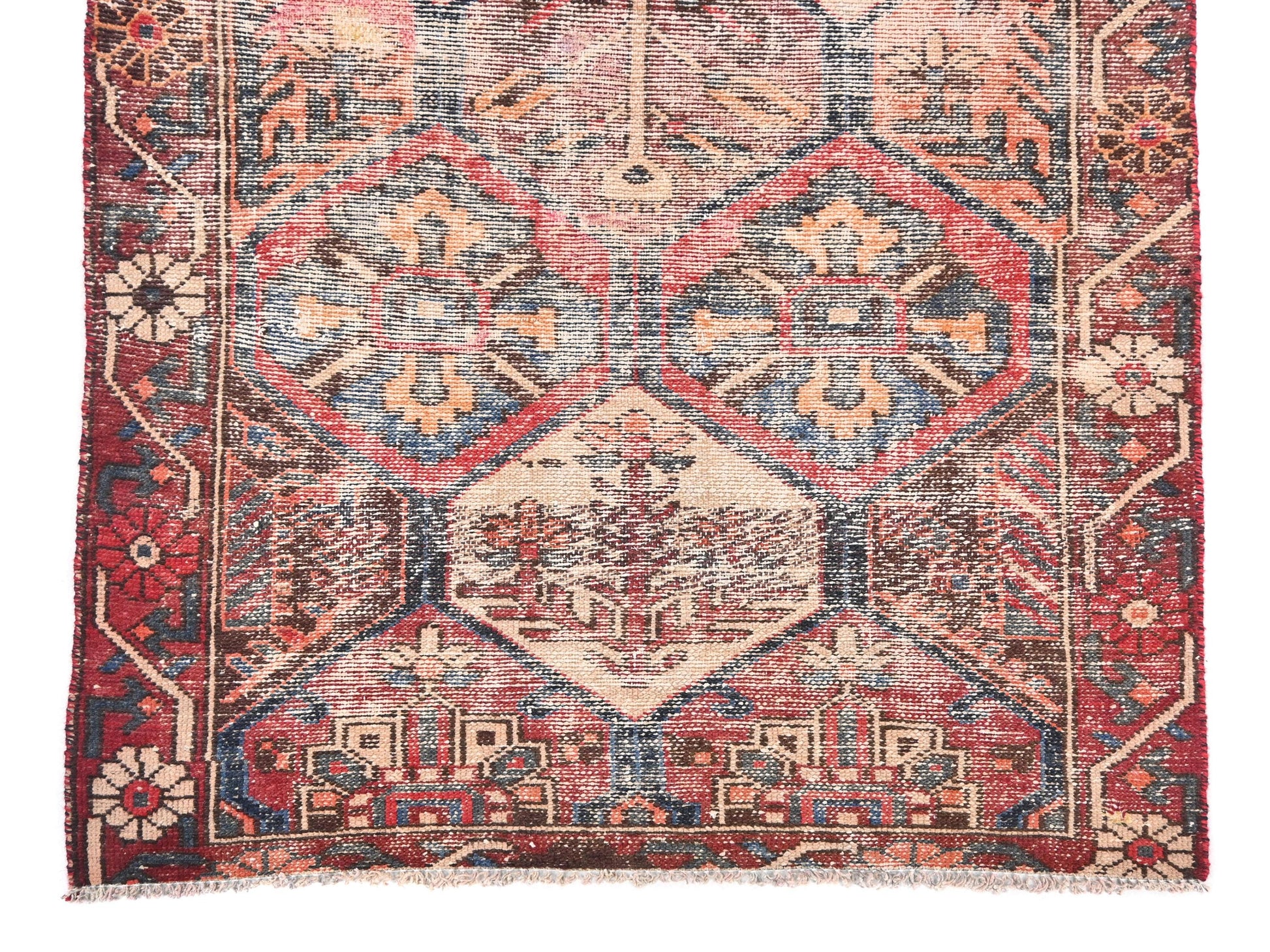 3x9 Handmade Turkish Vintage Tribal Rug | Cream Hexagon Medallions With Brick Red Borders | Boho Rug, Anatolian Rug | SHR671 | From 1970