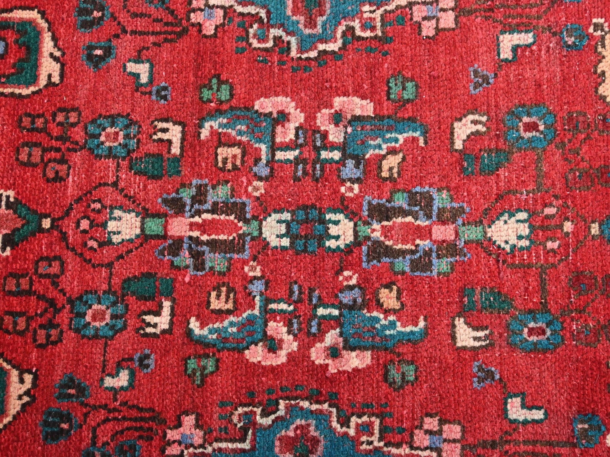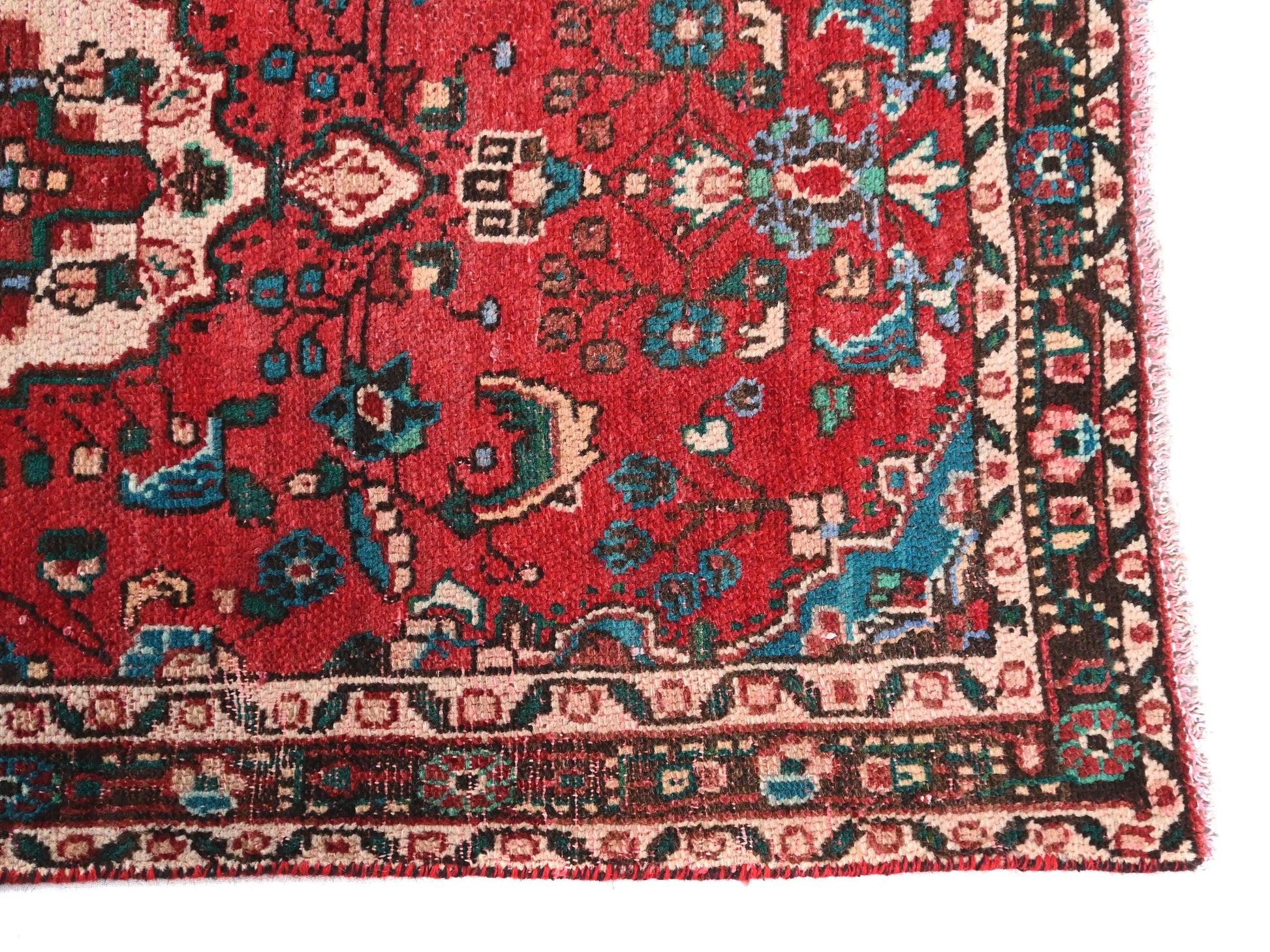 3x9 Handmade Turkish Vintage Tribal Rug | Floral Medallions On Red Field | Boho Rug, Anatolian Rug | SHR621 | From 1970