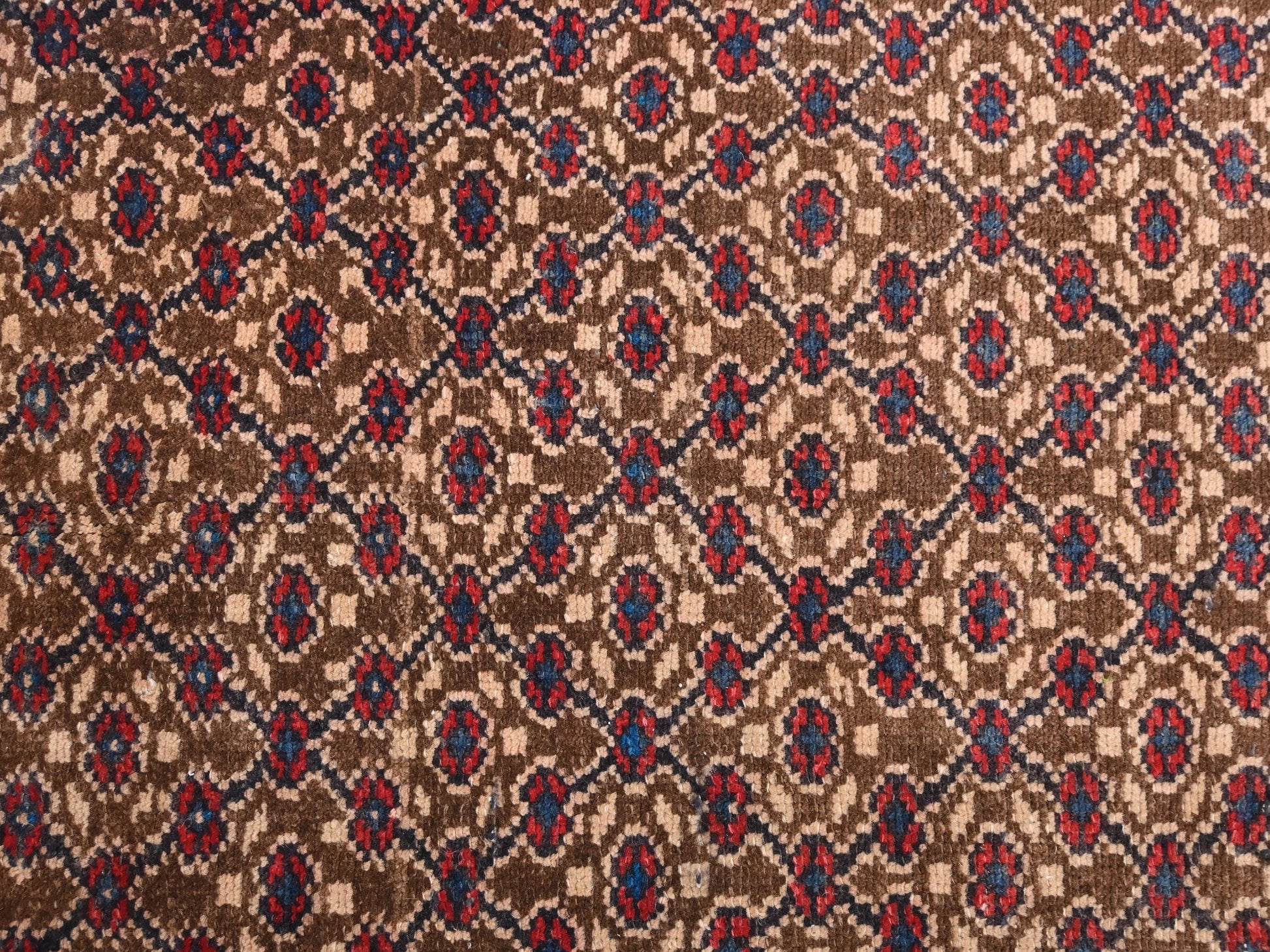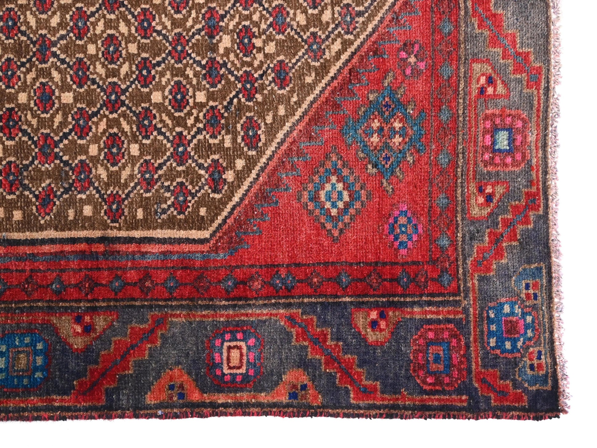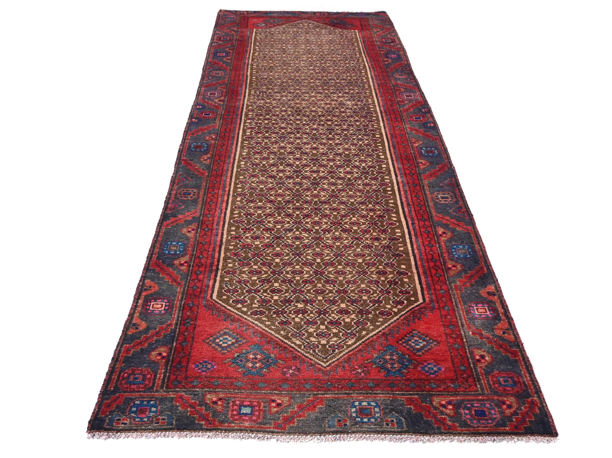 This 3x9 Turkish vintage runner from 1970 is a masterclass in detail, with thousands of tiny floral motifs woven into a burgundy backdrop. The uniformity of the tiny flowers creates a soft and almost pixelated texture, while the deep navy and red border adds richness and contrast. It’s a subtle yet powerful design that rewards closer inspection.