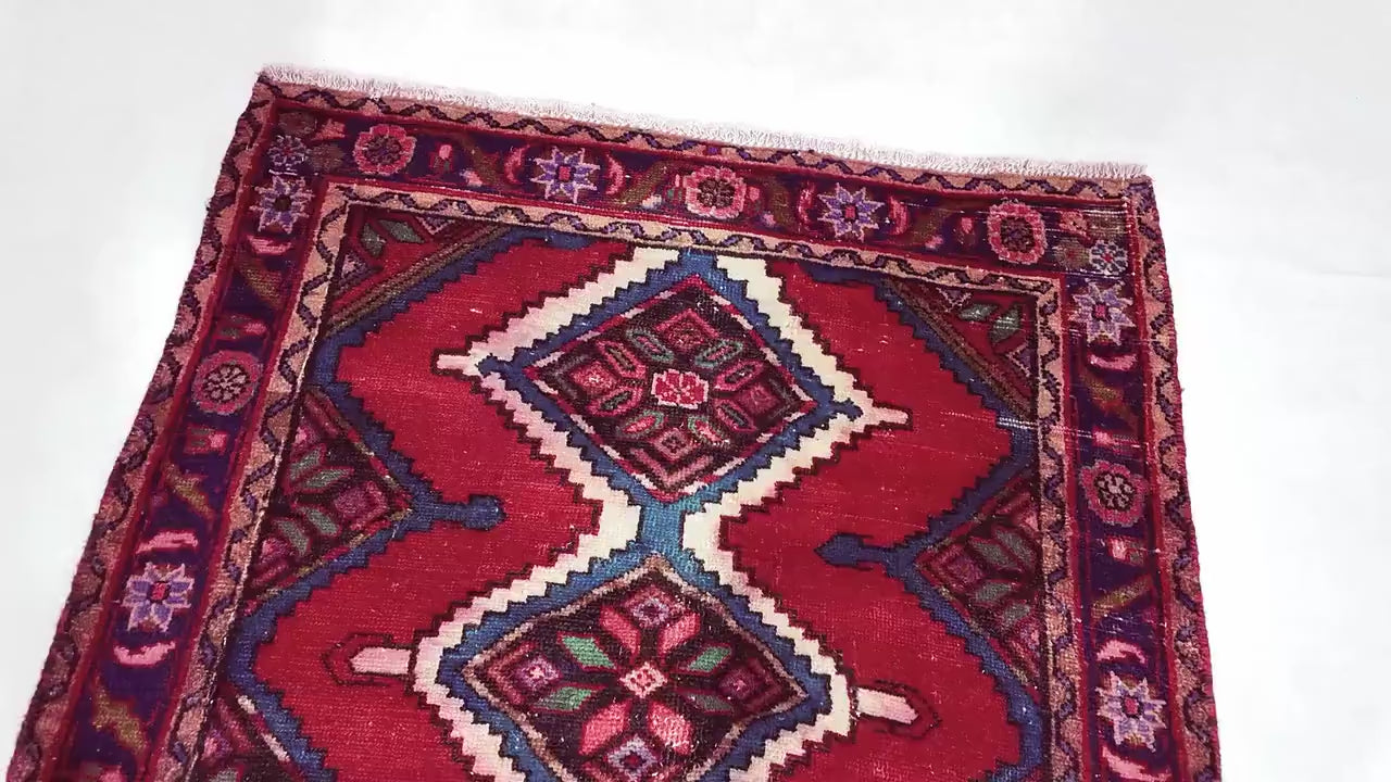 3x9 Handmade Turkish Vintage Tribal Rug | Vibrant Red Field With Diamond Medallions | Boho Rug, Anatolian Rug | SHR605 | From 1970