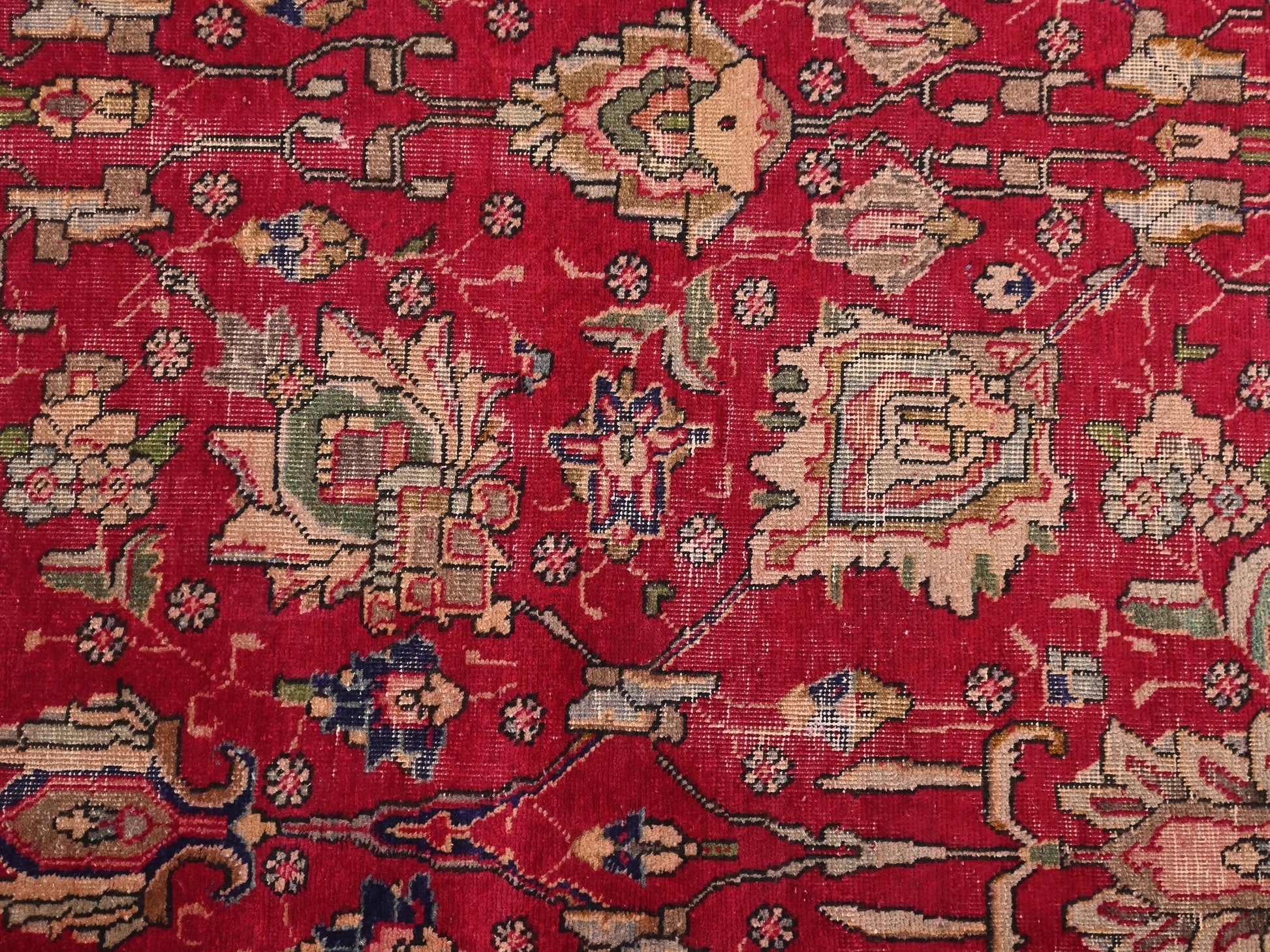 Ideal for adding sophistication to smaller living areas, entries, or creative spaces, this antique rug seamlessly balances bold visual energy with vintage charm. The aged color palette enhances the intricate botanical motifs, transforming this rug into a one-of-a-kind collector’s item designed to elevate any space.