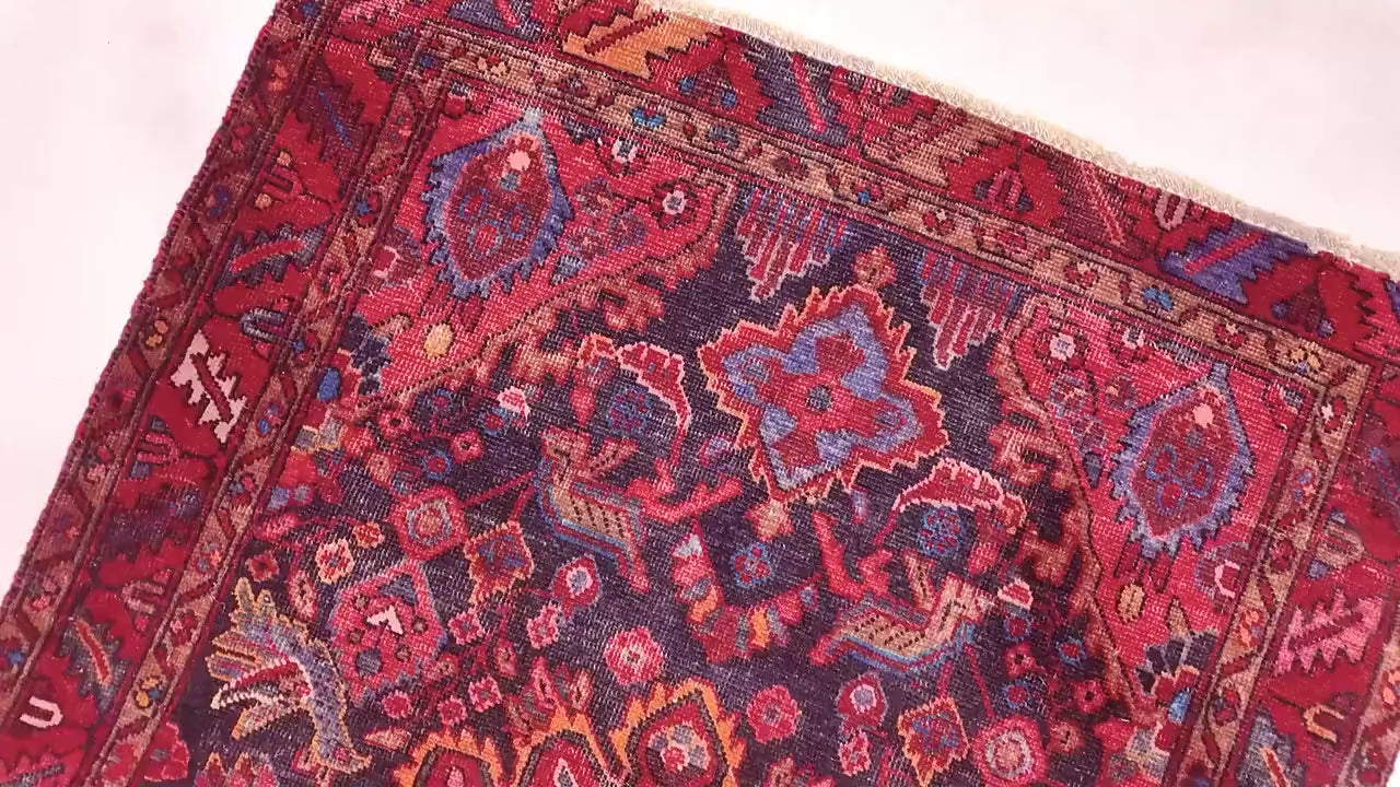 Step into the opulent embrace of the 'LUSH MIDNIGHT GARDEN,' a stunning Heriz Serapi rug that captures the essence of a mystical night bloom. This remarkable piece showcases an intricate design, featuring lush floral motifs and geometric patterns that dance across a richly saturated midnight blue field, framed by vibrant reds and subtle earth tones. Every knot tells a story, woven by hand in 190, and continues to resonate with elegance and sophistication. Perfect for enhancing any living room or dining area, this rug promises to be a conversation starter, enveloping your space in its deep, mesmerizing beauty. Own a piece of history with this antique rug, where each thread sings of artisan skill and the grandeur of a bygone era, making it not just a decor element but a legacy to cherish.