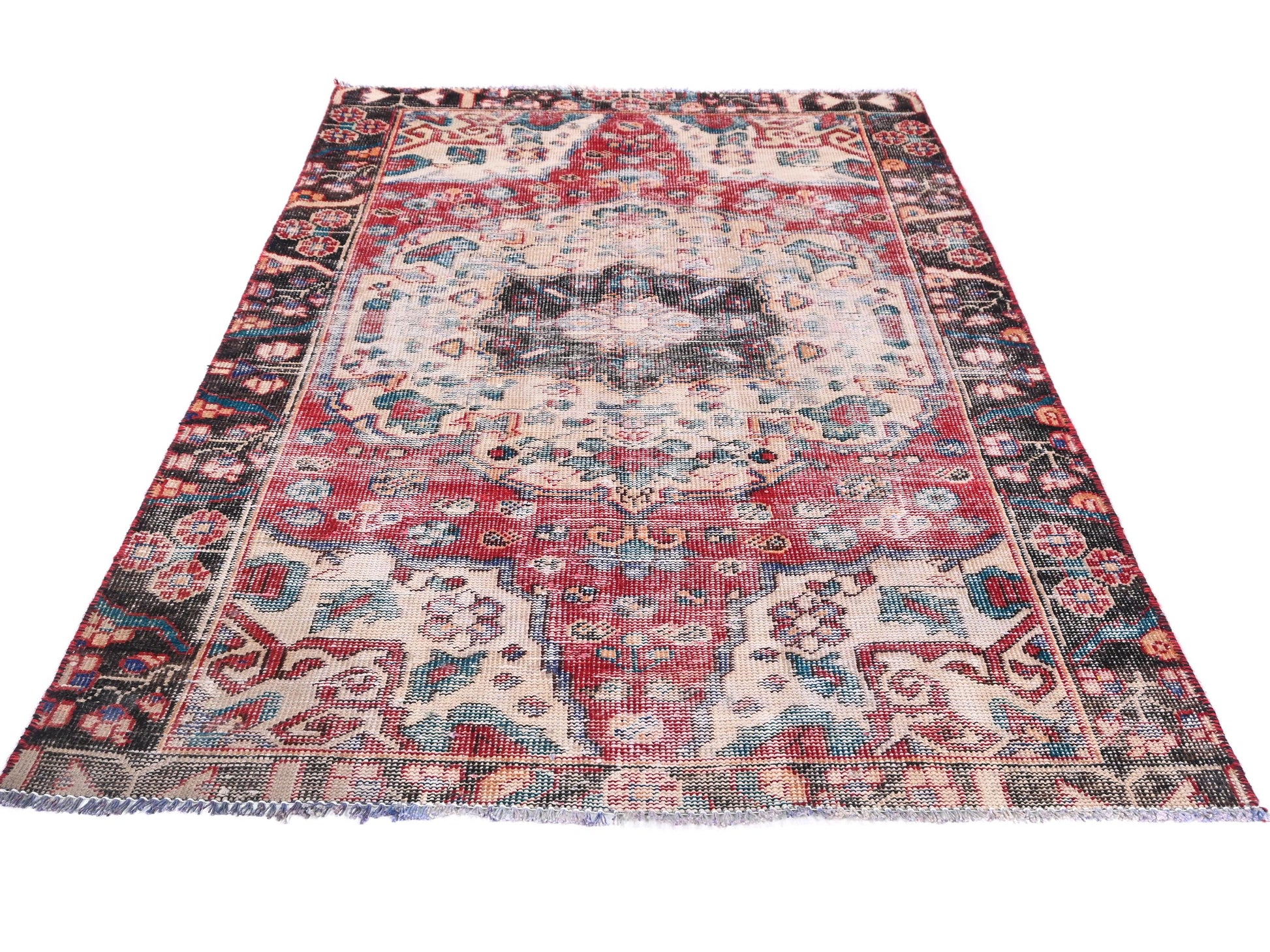 4x6 Handmade Turkish Vintage Tribal Rug | Faded Auburn Ivory Medallion Bloom | Boho Rug, Antique Anatolian Rug | SHR-427 | From 1980
