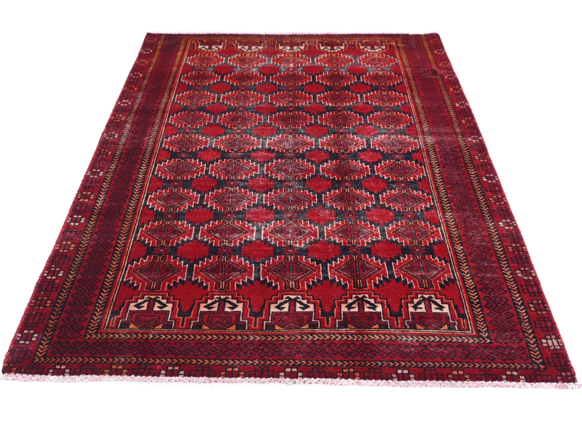 4x6 Handmade Turkish Vintage Tribal Rug | Geometric Elephant Feet on Deep Raspberry | Boho Rug, Antique Anatolian Rug | SHR424 | From 1980