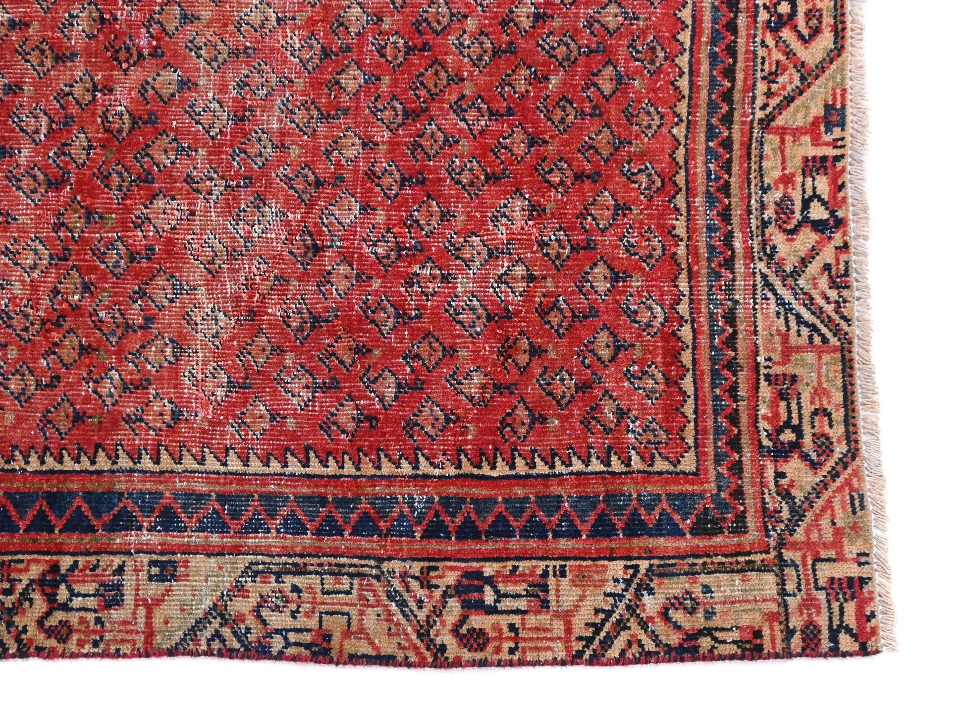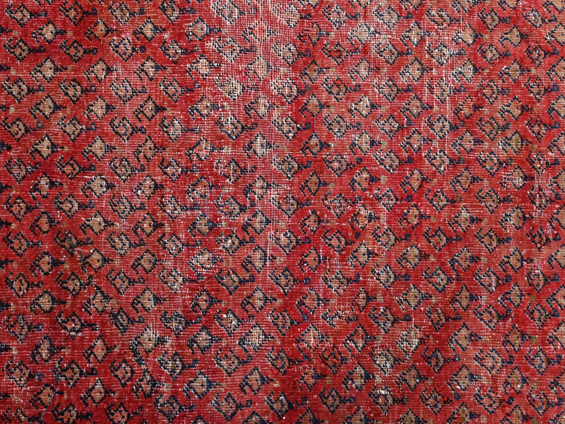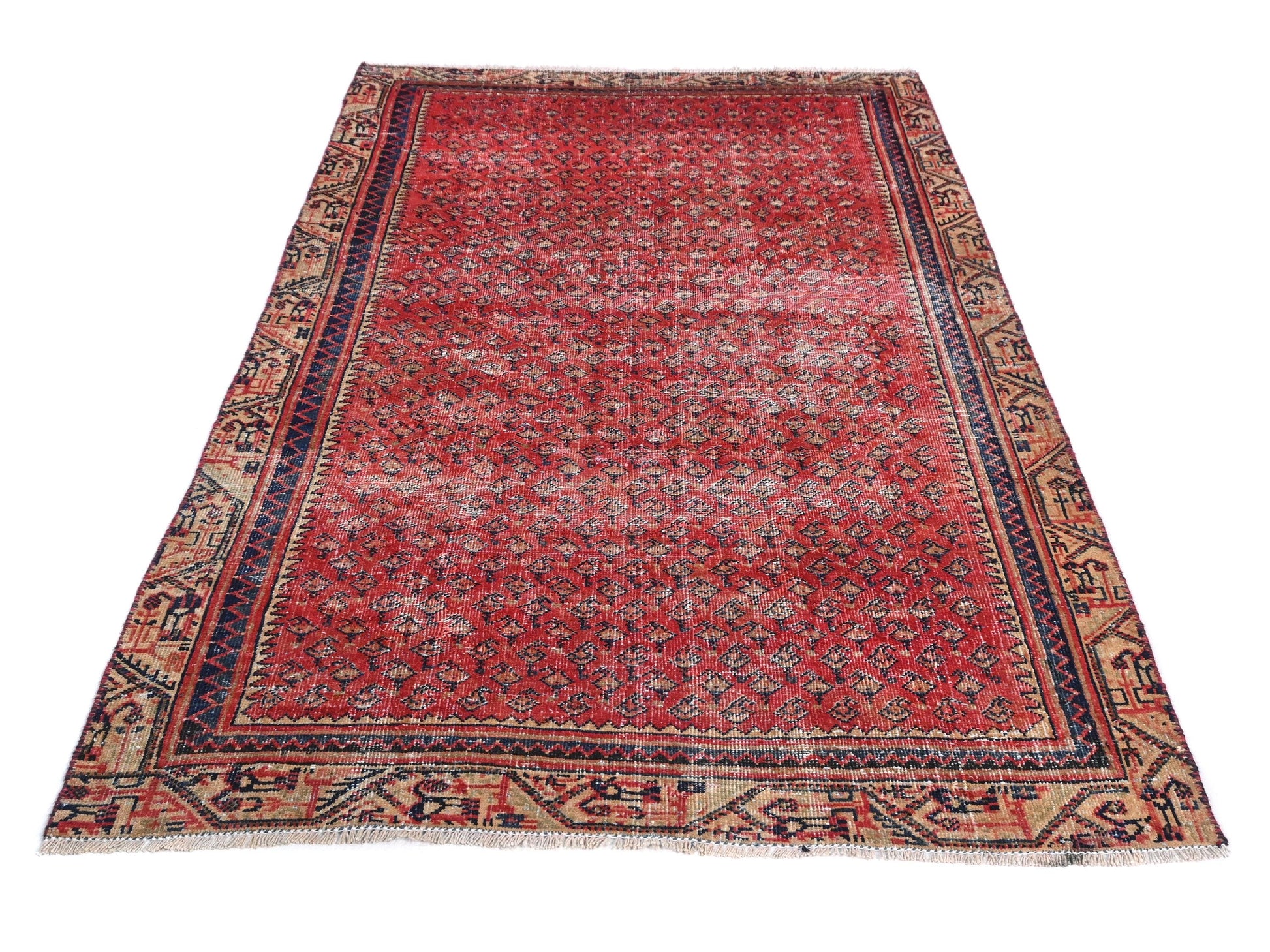 4x6 Handmade Turkish Vintage Tribal Rug | Mini Herati Field in Brick Red Hue | Boho Rug, Antique Anatolian Rug | SHR425 | From 1980