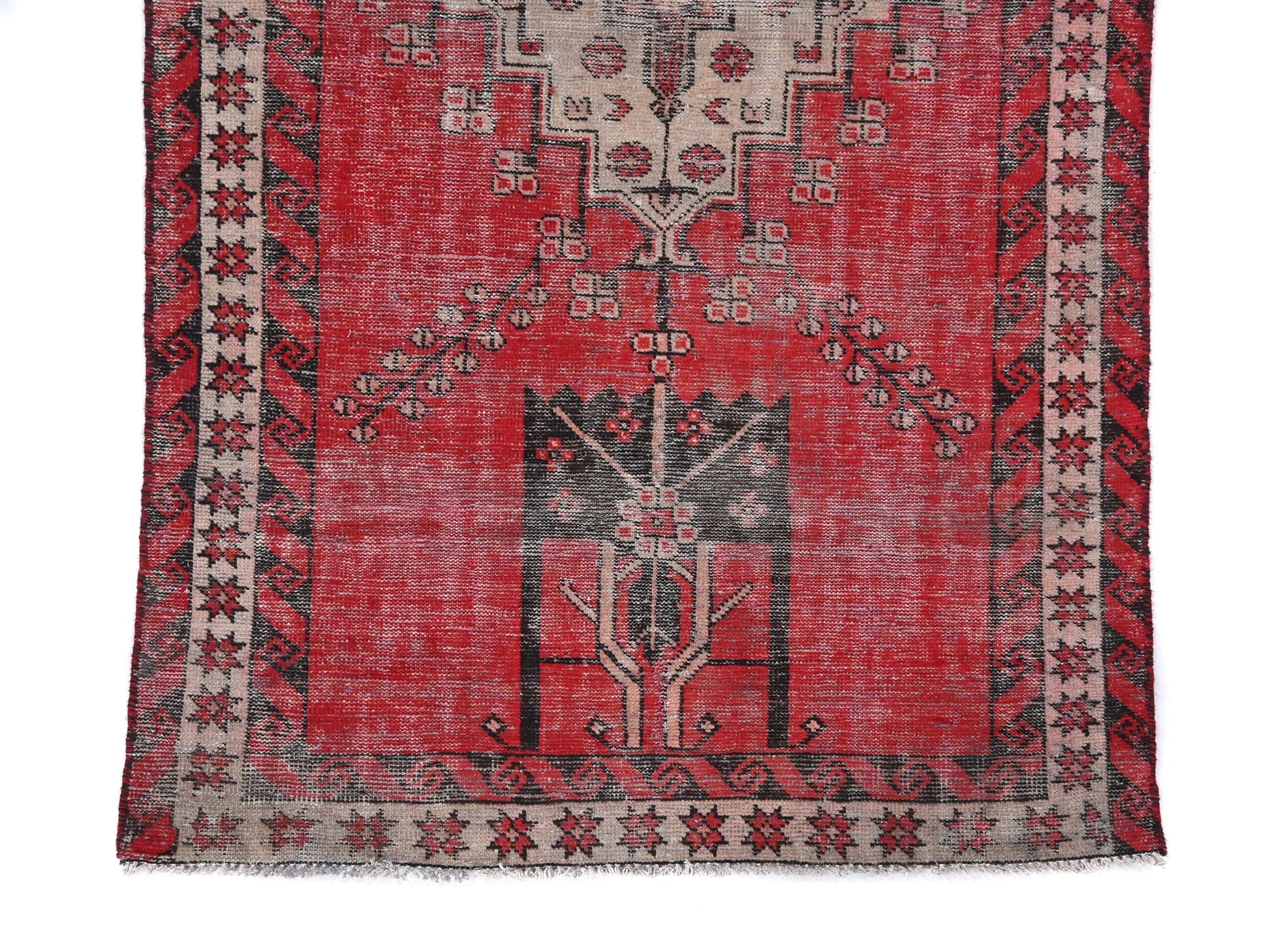 4x6 Handmade Turkish Vintage Tribal Rug | Red Floral Diamond Medallion | Boho Rug, Anatolian Rug | SHR439 | From 1980