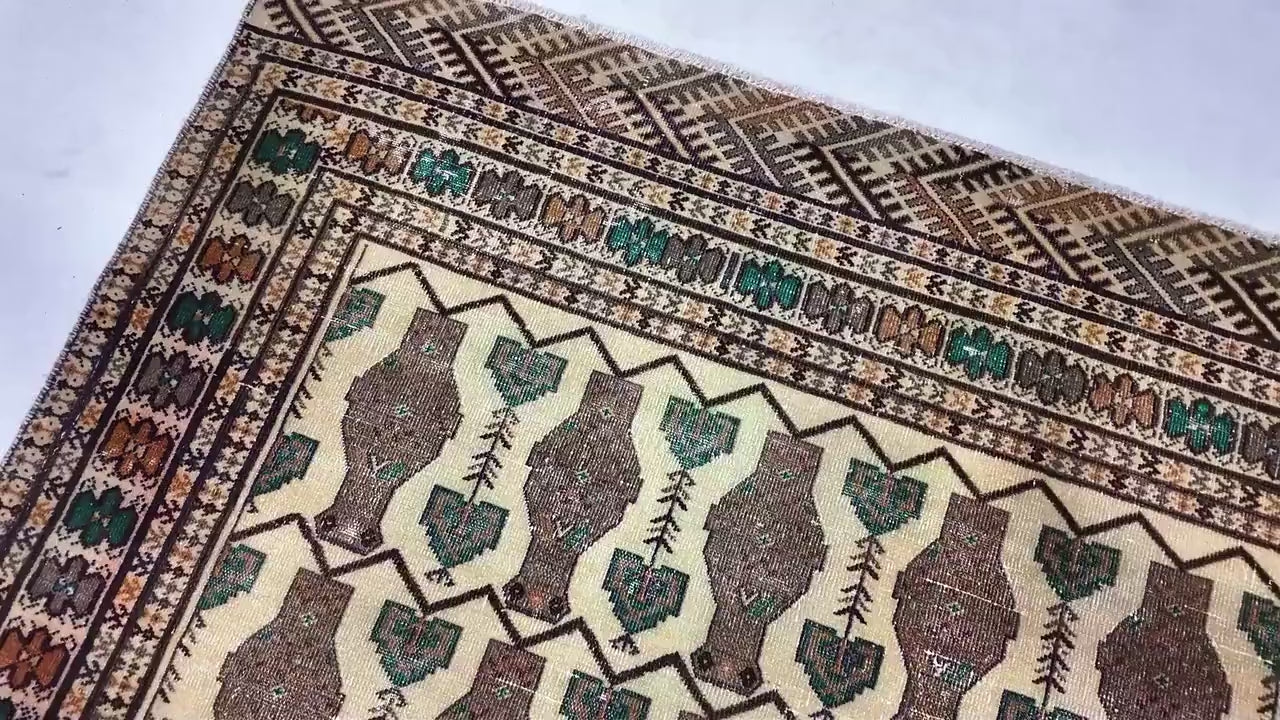 4x6 Handmade Turkish Vintage Tribal Rug | Repeating Brown Vase Rows | Boho Rug, Antique Anatolian Rug | SHR474 | From 1970