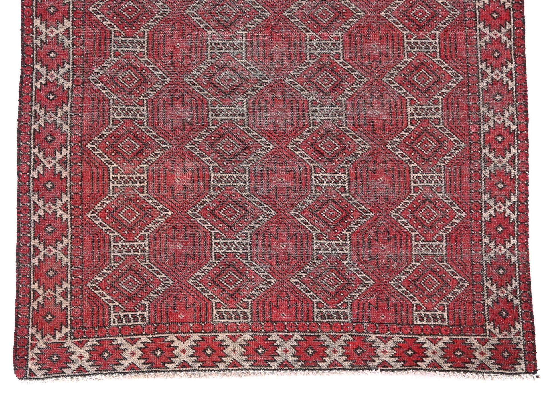 The wool's rich texture and the naturally aged dyes contribute to the rug's robust and vibrant appearance, ensuring it stands out in any setting. Ideal for both modern and classical interiors, this rug serves as a functional piece of art, enhancing the ambiance of a room with its historical elegance and striking color scheme. Its presence in a bedroom, living room, or kitchen adds a warm and inviting touch, promising to be a cherished addition to any home décor.