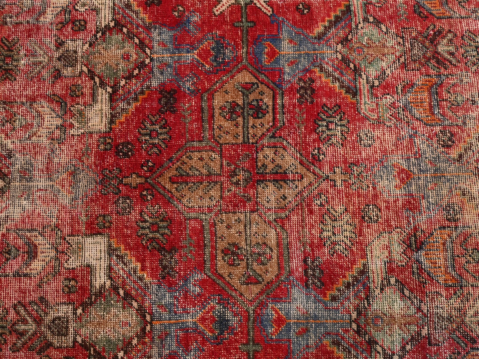4x7 Handmade Turkish Vintage Tribal Rug | Intricate Garden Of Life Florals On Rust Red Field | Boho Rug Anatolian Rug | SHR445 | From 1980