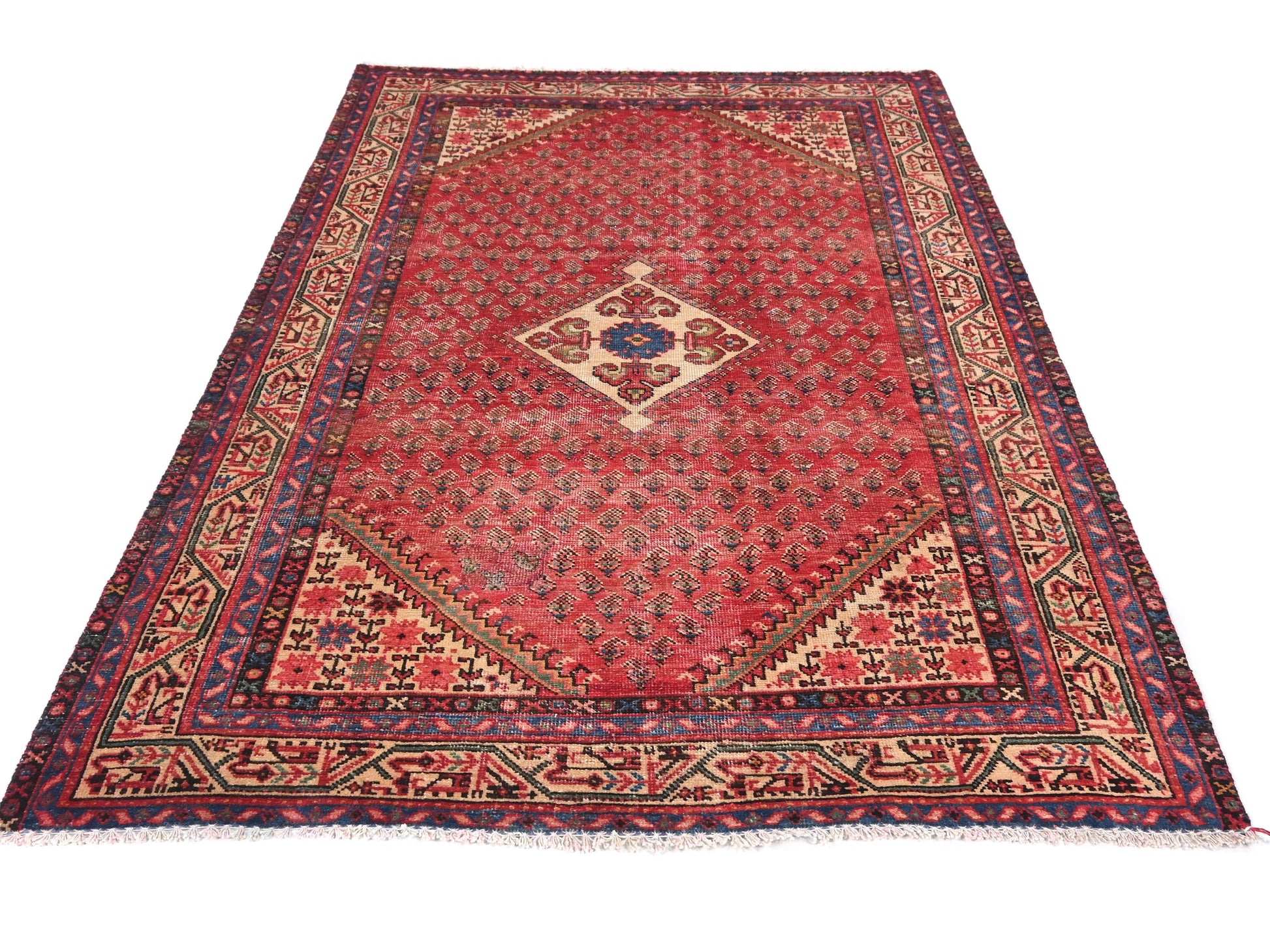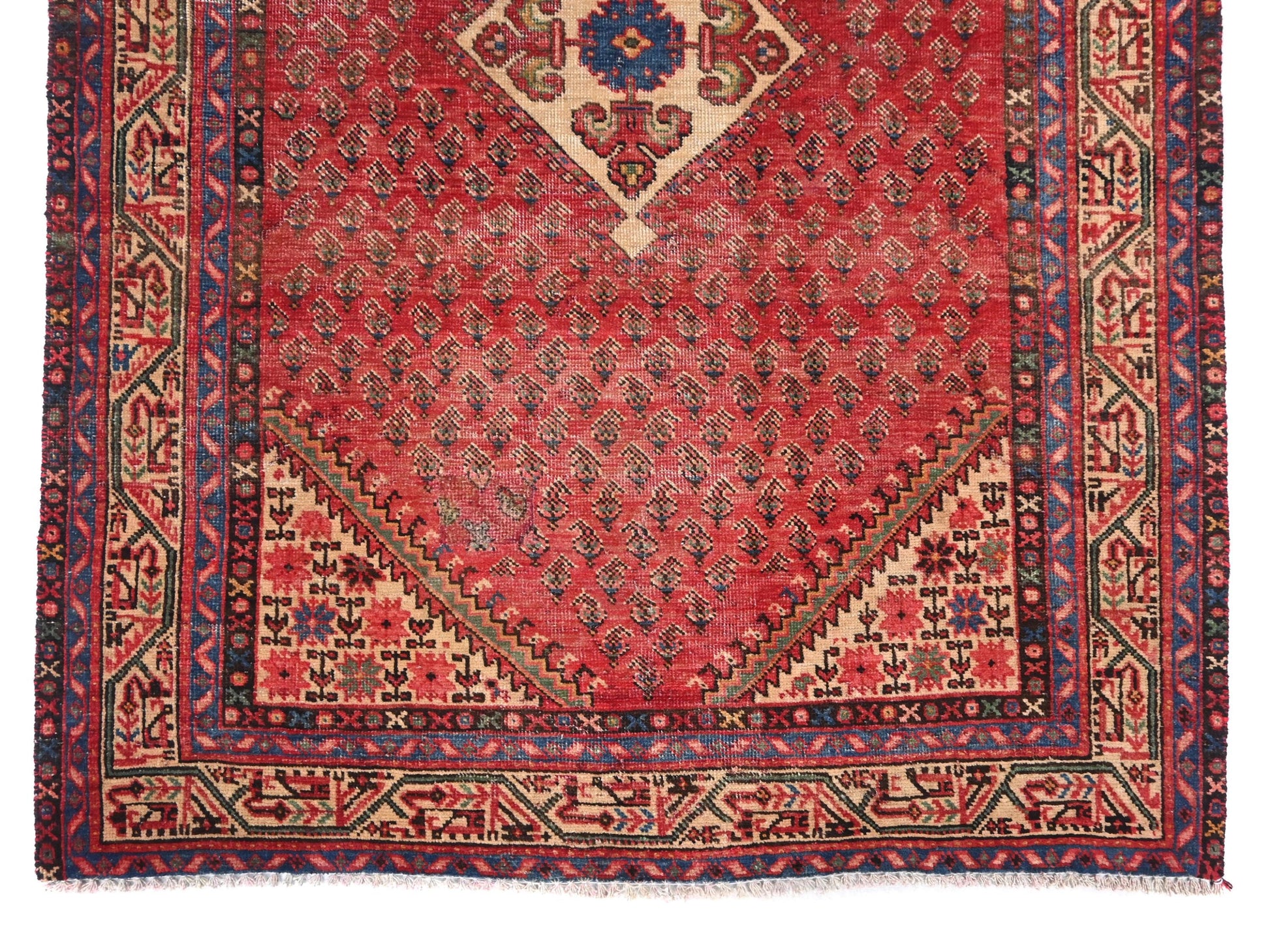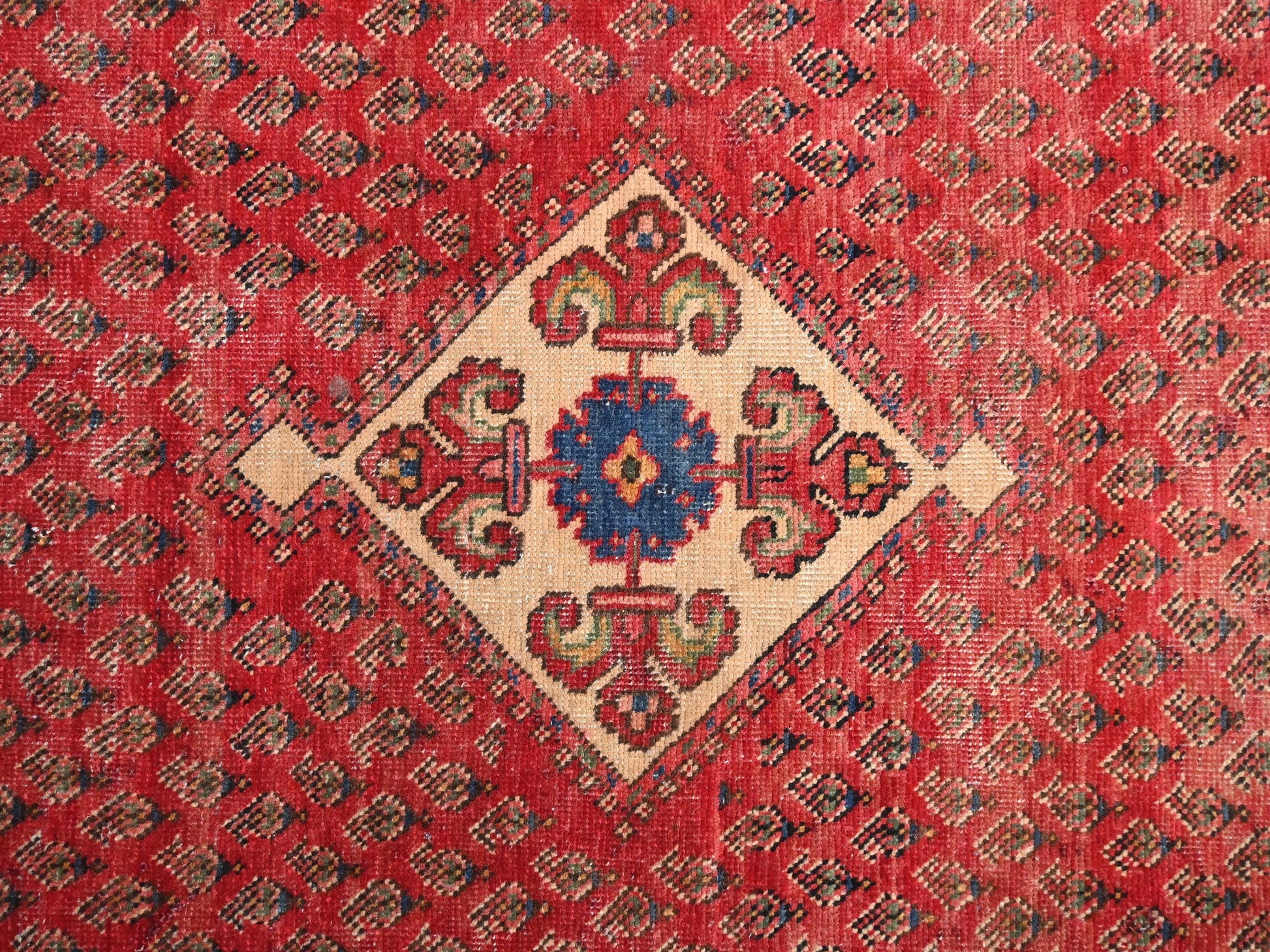 4x7 Handmade Turkish Vintage Tribal Rug | Red Teardrop Field with Diamond Medallions | Boho Rug, Antique Anatolian Rug | SHR414 | From 1980
